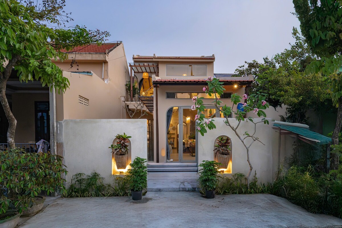 🎁 Μια νεόδμητη βίλα μόλις 3 λεπτά με τα πόδια από την παραλία Cua Dai και τον ποταμό Thu Bon, που προσφέρει έναν σπάνιο συνδυασμό ιδιωτικότητας, ευεξίας και παράκτιας γοητείας. Απολαύστε ιδιωτική πισίνα, γιόγκα στην παραλία και πρόσβαση σε τοπικά εστιατόρια και σπα. Με 3 γαλήνια υπνοδωμάτια (2 διπλά κρεβάτια + 2 μονά), φιλοξενεί άνετα 6 ενήλικες + 2 παιδιά (κάτω των 6 ετών) — ιδανικό για οικογένειες που αναζητούν χώρο, χαλάρωση και ουσιαστική σύνδεση σε ένα εκλεπτυσμένο, ήρεμο περιβάλλον.