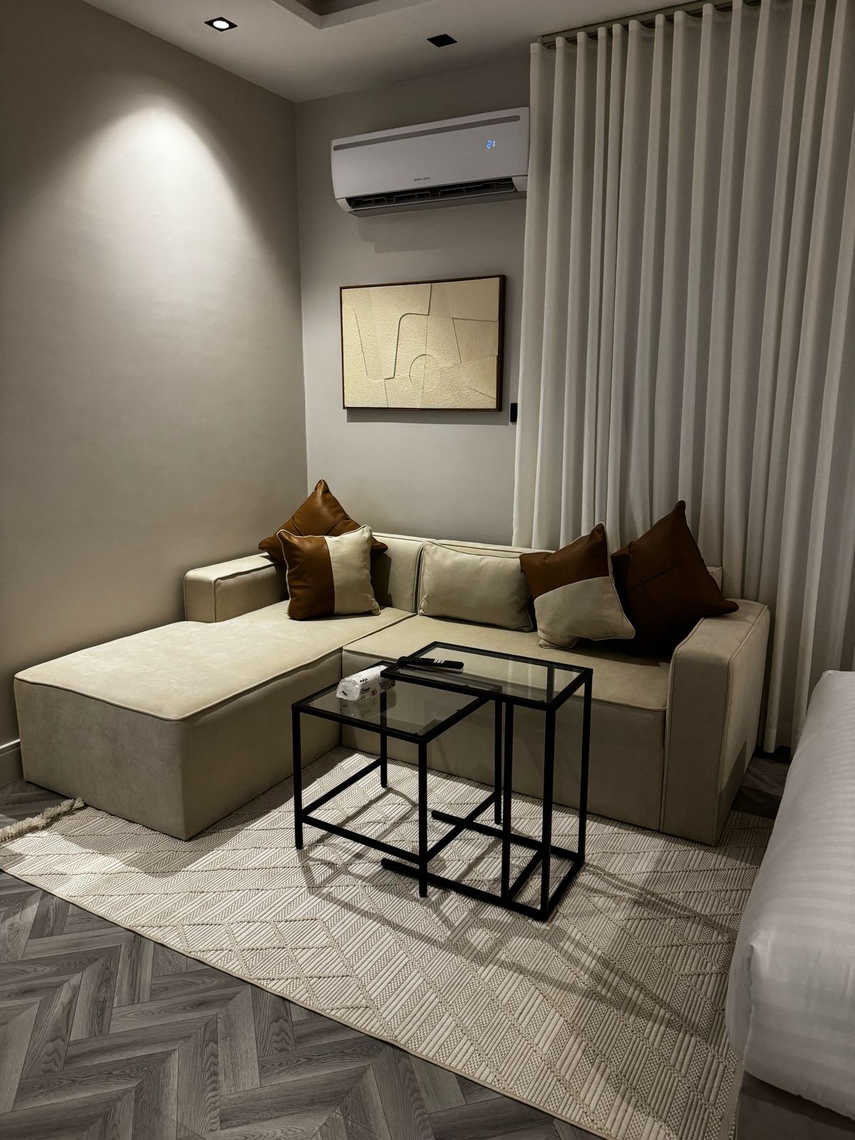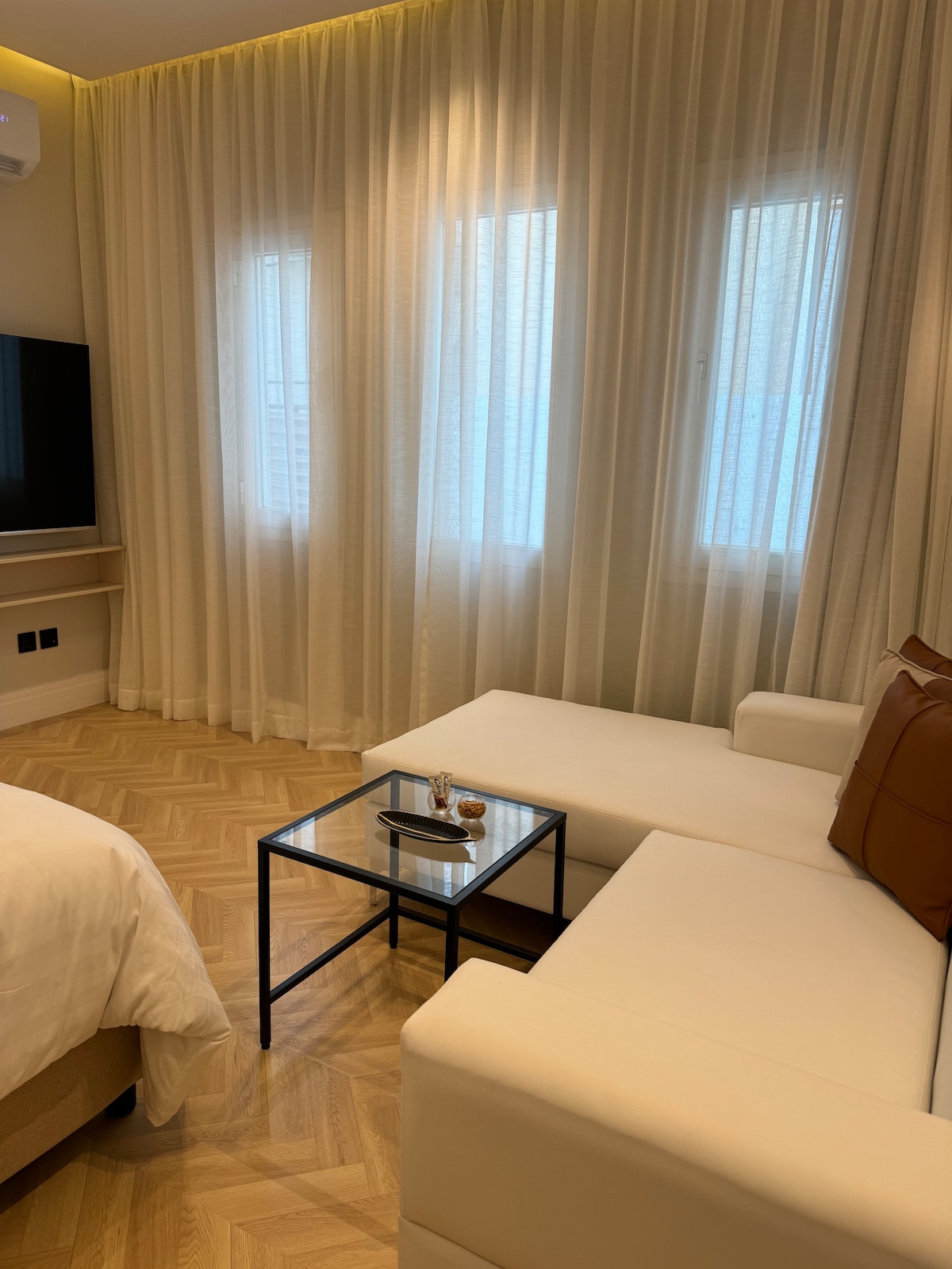 Καλώς ήρθατε στο κομψό διαμέρισμά σας εμπνευσμένο από το Τόκιο, που βρίσκεται στην καρδιά του Ριάντ, μόλις 300 μέτρα με τα πόδια από τον σταθμό του μετρό του Ριάντ. Αυτό το εκπληκτικό στούντιο με ανοιχτό χώρο ενσωματώνει την ουσία της σύγχρονης ιαπωνικής αισθητικής, με κομψές γραμμές, απλά έπιπλα και μια ήρεμη ατμόσφαιρα. Το διαμέρισμα βρίσκεται σε ένα κτίριο με εσωτερική διακόσμηση εμπνευσμένη από μια γκαλερί τέχνης.