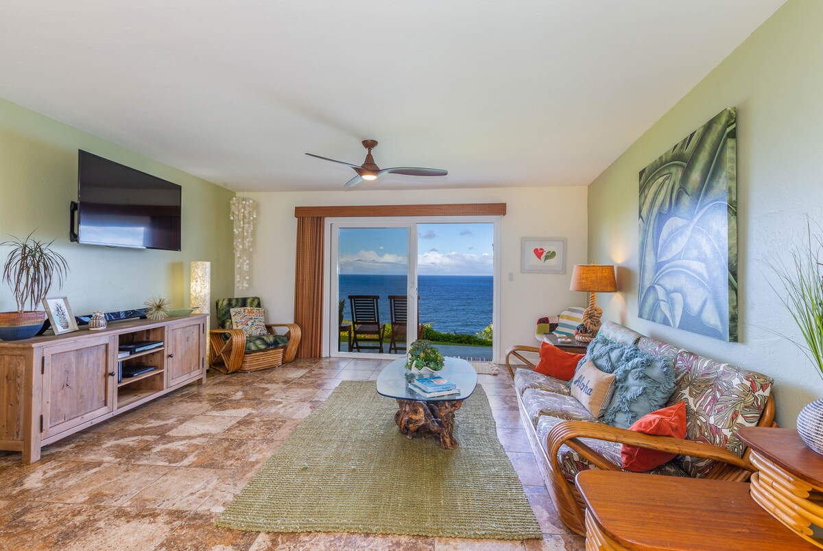 Αυτό το μοντέρνο και πρόσφατα ανακαινισμένο παραθαλάσσιο κατάλυμα για μήνα του μέλιτος έχει εκπληκτική πανοραμική θέα στον ωκεανό και την ακτογραμμή. Χαλαρώστε στο κρεβάτι ημέρας ενώ ατενίζετε την εκτεταμένη θέα από τον ύφαλο Anini μέχρι τον φάρο Kilauea. Κάποιοι έχουν πει ότι "νιώθουν σαν να είναι σε ένα πλοίο στη θάλασσα", καθώς βλέπουν φάλαινες να βγαίνουν στον ωκεανό και κύματα να ξεφλουδίζουν στον ύφαλο από αυτή τη μαγική τοποθεσία. Ένα σπάνιο ρετιρέ με ψηλά ταβάνια, θέα από κάθε δωμάτιο, ακόμη και το διάσημο Bali Hai από τη βεράντα. Πραγματικά το όνειρο ενός ζευγαριού!