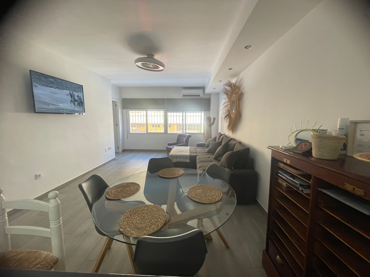 Precioso apartamento a pie de playa, recién reformado, con gran terraza vistas al mar. Cuenta con espacio abierto, cocina, salon comedor, gran habitación independiente, con salida a la terraza, y amplio baño. A si mismo dispone de Wifi y aire acondicionado. Alberga un espacio ideal para la desconexión. Completamente equipado, y ubicado en un entorno idílico, tanto para el relax, cómo para el ocio. El apartamento y el entorno, le harán disfrutar de una estancia inolvidable.