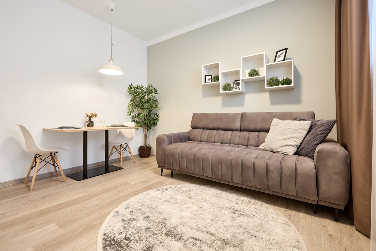 Απολαύστε τα ολοκαίνουργια, κομψά, πλήρως επιπλωμένα διαμερίσματα που σχεδιάστηκαν από το διάσημο αρχιτεκτονικό γραφείο Nedvěd Architekti, όπου μπορείτε να βρείτε τα πάντα, από άνετα κρεβάτια μέχρι πετσέτες και φλιτζάνια καφέ. Το προσεκτικά ανακαινισμένο κτίριο έχει διατηρήσει τα καλύτερα στοιχεία της ιστορίας και έχει προσθέσει όλα όσα απαιτεί η σύγχρονη στέγαση. Βολευτείτε! • 5 λεπτά από την καρδιά της Πράγας • 80 μέτρα από το πλησιέστερο καφέ • 1 στάση από τον κεντρικό σιδηροδρομικό σταθμό • Λίγα βήματα από το μετρό και το τραμ