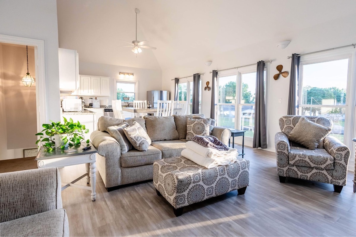 Χαλαρώστε σε αυτόν τον ήρεμο, κομψό χώρο. Ελάτε να απολαύσετε όμορφα ηλιοβασιλέματα στην ιδιωτική σας βεράντα, ενώ χαλαρείτε σε ένα τζακούζι ή κάθεστε γύρω από τη φωτιά. Απολαύστε αυτό το άνετο καταφύγιο μόλις 1 μίλι από το γήπεδο γκολφ RTJ και 3 μίλια από την πλησιέστερη ράμπα σκαφών. Αυτό το κατάλυμα προσφέρει κουζίνα με μπαρ καφέ και ψύκτη κρασιού, εσωτερική/εξωτερική τηλεόραση, ευρύχωρη ντουζιέρα και μπανιέρα με πόδια. Προσφέρουμε επίσης συνδέσεις για σκάφη και τροχόσπιτα. Απολαύστε μεγάλη ποικιλία από φαγητό και ψυχαγωγία 10-15 λεπτά μακριά.