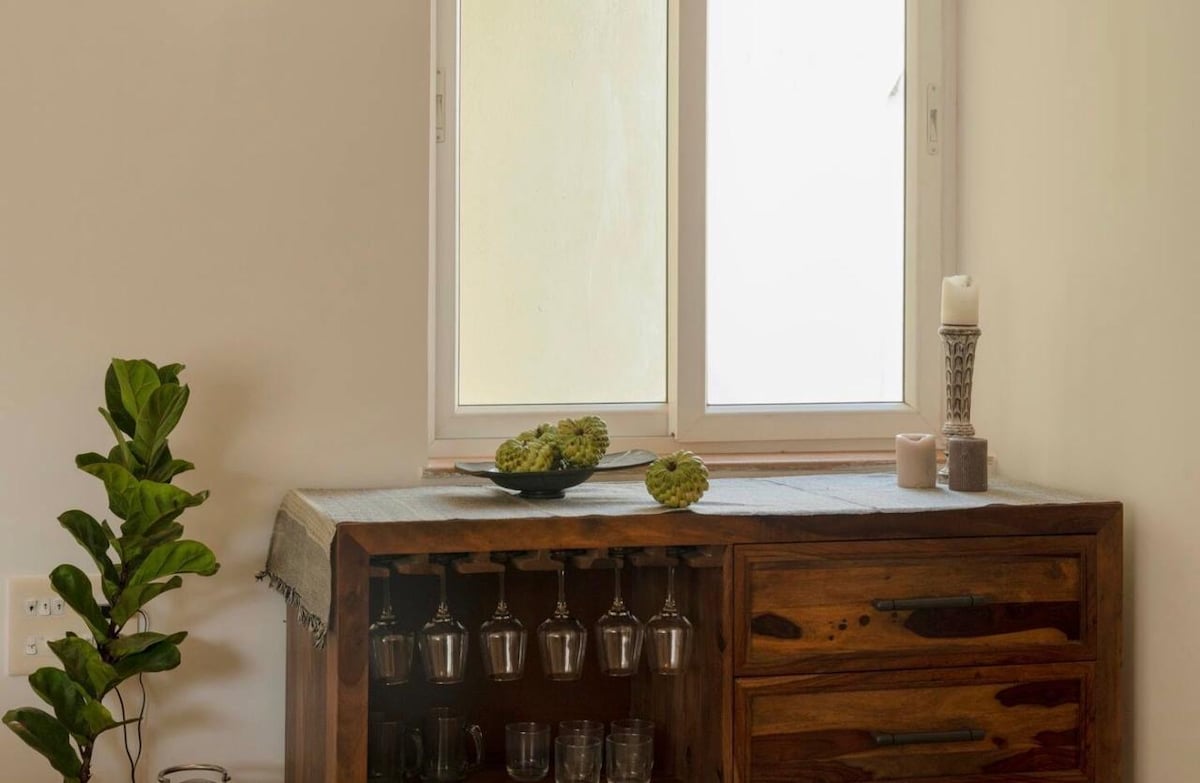 Ανακαλύψτε έναν κόσμο γαλήνης και έμπνευσης στο The Pause Project, ένα άνετο ρομαντικό κατάλυμα στην Airbnb που βρίσκεται στη μέση ενός καταπράσινου δάσους στο Σιόλιμ της Βόρειας Γκόα. Ιδανικό για μοναχικούς ταξιδιώτες, ζευγάρια και οικογένειες, προσφέρει έναν χώρο για χαλάρωση. Βυθιστείτε σε βιβλία, μουσική, ταξιδιωτικές αναμνήσεις και μια ζωντανή ατμόσφαιρα που θα σας κάνει να νιώσετε σαν στο σπίτι σας. Μαγειρέψτε στην κουζινάκι ή εξερευνήστε το Siolim, γνωστό για τις καφετέριες και τα μπαρ του, με τις παραλίες Anjuna, Vagator, Assagao & Morjim, Mandrem 15-20 λεπτά μακριά και 35 λεπτά από το αεροδρόμιο MOPA.