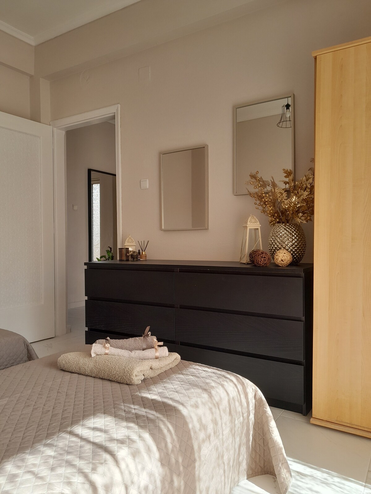 Κομψό και άνετο διαμέρισμα 70 τ.μ., πλήρως εξοπλισμένο! Ιδανικό για όποιον απολαμβάνει τη ζεστασιά του ξύλου, τη θέα στη θάλασσα και το μπάνιο!!! 10' μακριά από το αεροδρόμιο της Θεσσαλονίκης και 30' από την πόλη. Το διαμέρισμα συνδυάζει μια τέλεια τοποθεσία στην παραλία, εσωτερική διακόσμηση και εύκολη πρόσβαση στην πόλη. Στη γειτονιά μπορείτε να βρείτε beach bar, σούπερ μάρκετ, γυμναστήρια, ταβέρνες, καφετέριες και πολλά άλλα πράγματα να κάνετε κατά τη διάρκεια της επίσκεψής σας. Δοκιμάστε μια βόλτα με το φέριμποτ από την Παιρία στην πόλη!