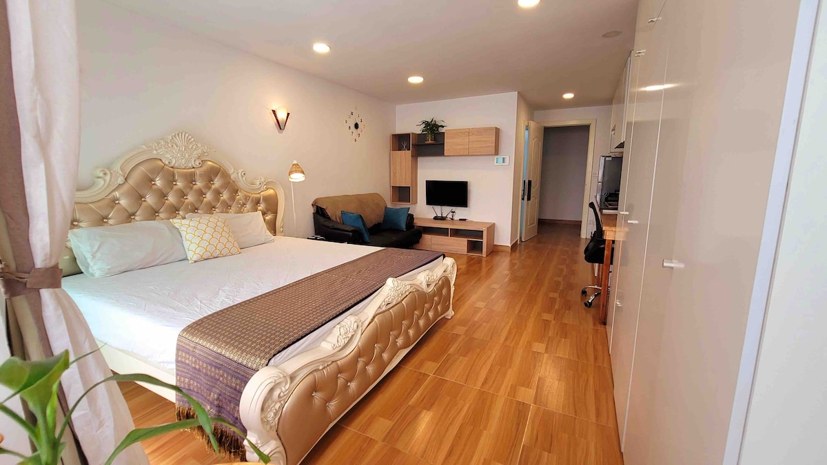 Welcome to one of the most beautiful and contemporary studio apartment at a reasonable price in the vibrant center of Siem Reap. Guests will enjoy easy access to everything from this centrally located apartment. It is about a 10-minute walk to shopping malls, supermarkets, restaurants, cafes, parks, and more. This spacious studio apartment features a kitchenette and essential amenities needed for comfortable living for a month or longer. Book now to secure the lovely room before it runs out.