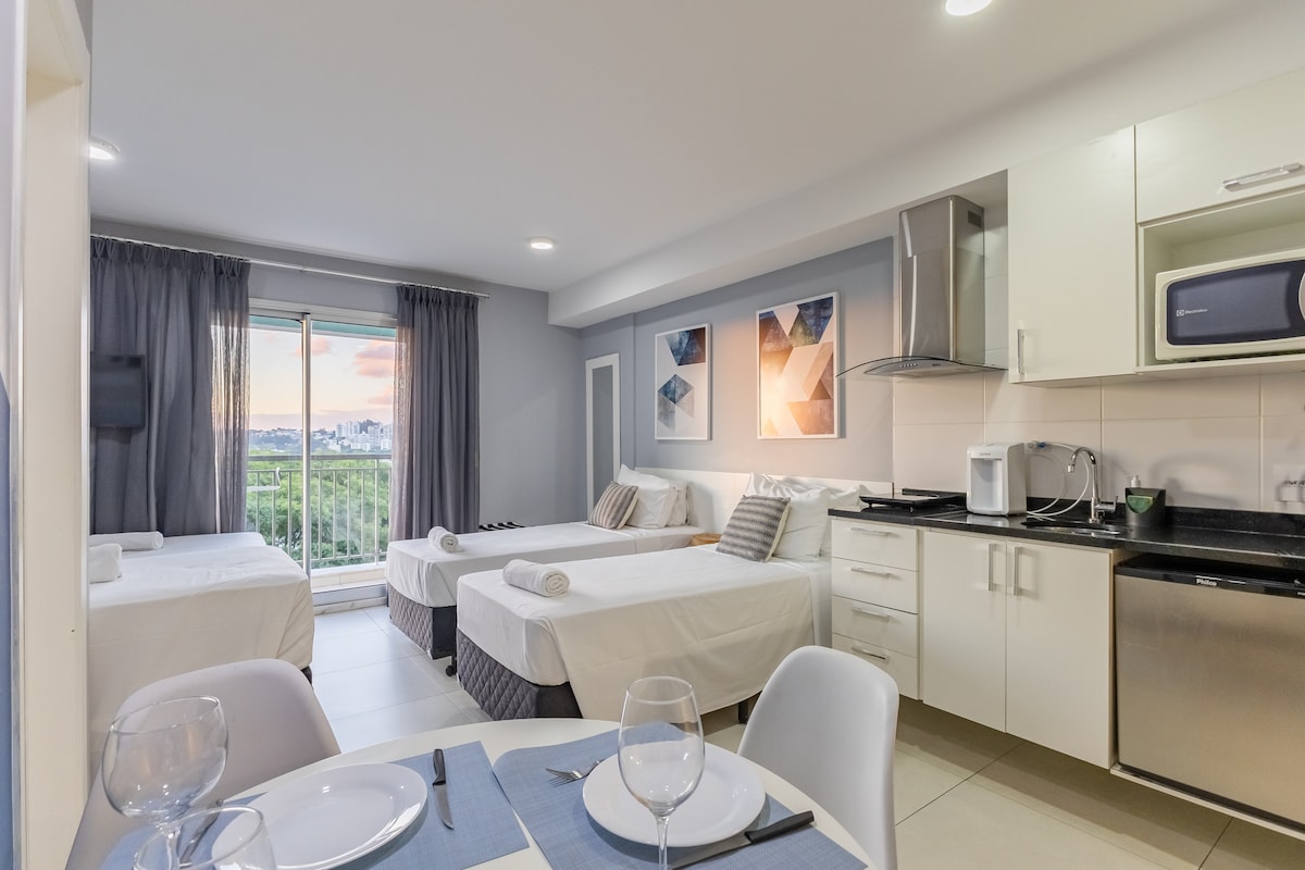 PRÓXIMO DE TUDO: Expo Center Norte, Shopping Center Norte, Metrô Tietê, Rodoviária Tietê, Anhembi, Sambódromo, Marginal... Studio confortável, aconchegante e completo para até 3 adultos e 1 criança. Cama box de casal com cama auxiliar. Cozinha com todos os eletros domésticos e utensílios. Roupas de cama, mesa, banho e Itens de higiene. Ar condicionado, secador de cabelo, ferro de passar...
