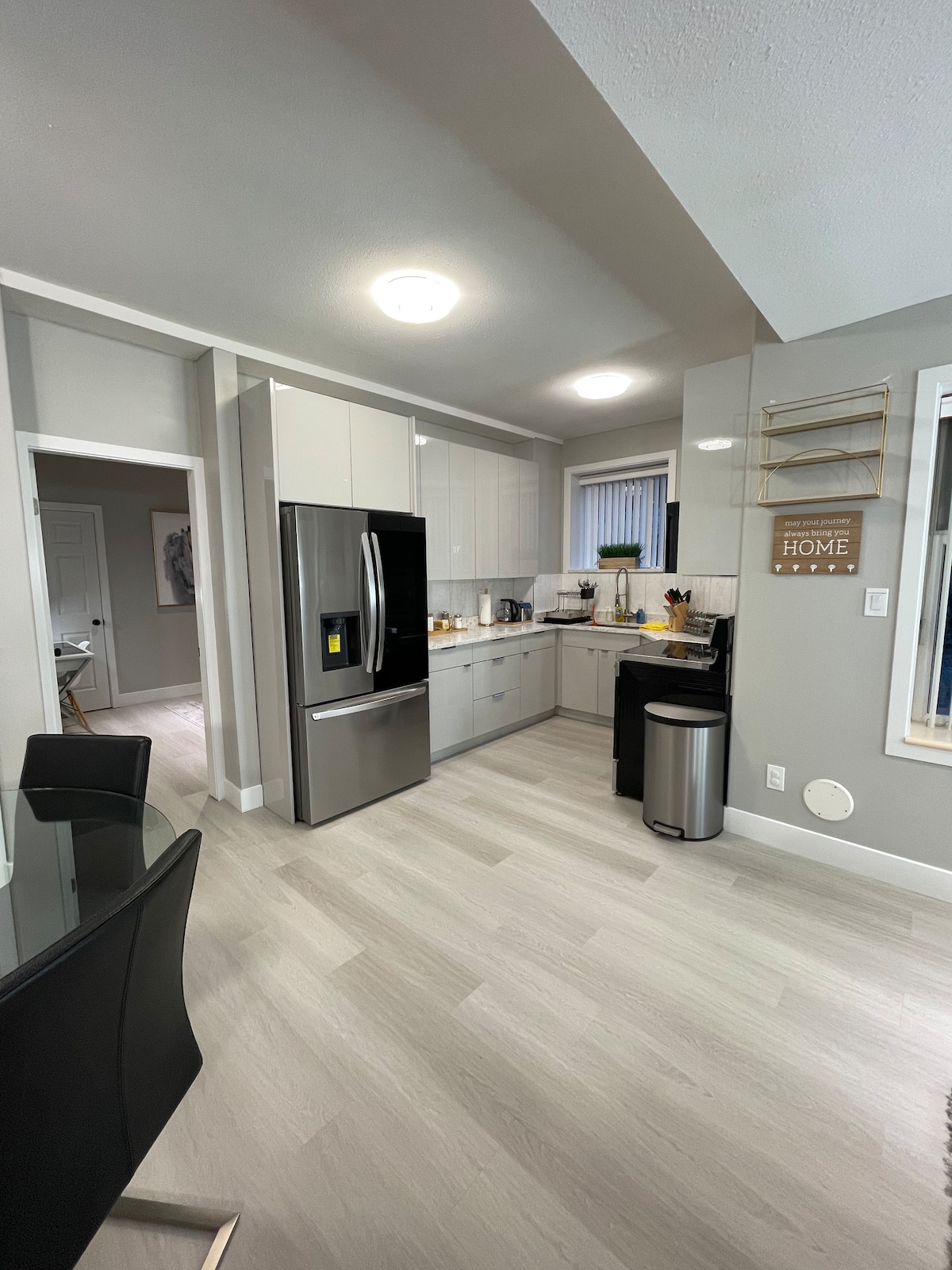Guests love our top 5% home: sparkling clean, beautifully designed, and incredibly comfortable. Boutique-style suite with high ceilings, a luxurious king bed, and comfort better than a hotel stay. Enjoy a sunny living room, in-suite laundry, 1G Wi-Fi, 52" smart TV with Netflix, free coffee & tea, private entry, and free parking. Thermostat heating and naturally cool in summer. Walk to transit, parks, and trails; a short drive to shopping. Perfect for couples, families, solo, or business stays.