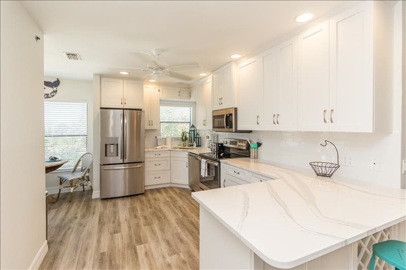 Κομψό εξοχικό με 2 κρεβάτια, 2,5 μπάνια, σε κοντινή απόσταση με τα πόδια από τον όμορφο ποταμό Manatee και το ιστορικό κέντρο του Bradenton. Μόνο 20 λεπτά με το αυτοκίνητο από το νησί Anna Maria και τις μεγάλες γειτονικές πόλεις, την Τάμπα και τη Σαρασότα. Ένα άνετο σπίτι, με εκπληκτική επαγγελματική εσωτερική διακόσμηση. Η καθαριότητα ήταν ιδιαίτερα σημαντική σε αυτό το κατάλυμα, με σχεδόν κάθε επιφάνεια, από τα καλύμματα του καναπέ μέχρι τα ένθετα του παπλώματος, να είναι πλενόμενα ή να μπορούν να πλυθούν με χλωρίνη. Σας ενημερώνουμε ότι το τρίτο κρεβάτι είναι ένα κρεβάτι που ανοίγει στο σαλόνι!