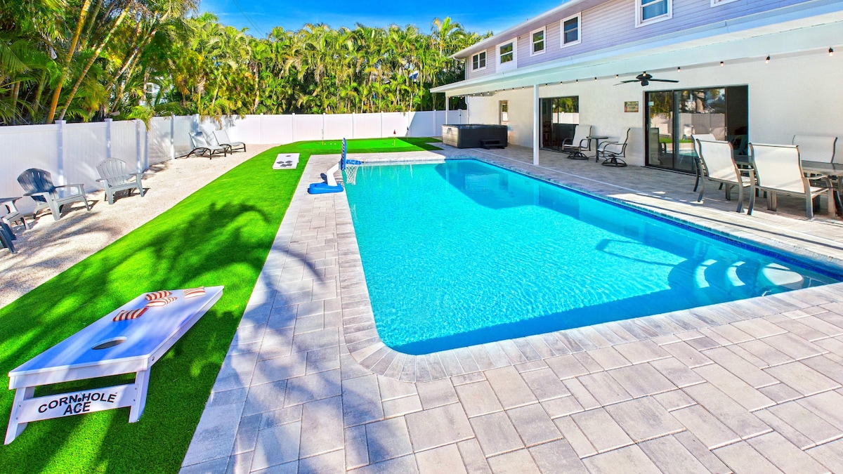 Άνοιγμα ξανά στις 25 Ιανουαρίου! Βρίσκεται μόλις 200 βήματα από την παραλία, οπότε θα πατάτε στην άμμο σε χρόνο μηδέν. Άνετο σαλόνι + πλήρως εξοπλισμένη κουζίνα. Επιπλωμένο με νησιωτική διακόσμηση και τοπική τέχνη. Ό,τι χρειάζεστε, μαζί με μια θερμαινόμενη πισίνα, ένα μεγάλο αίθριο με μια καλύβα Tiki, τροπικούς κήπους, καθώς και έναν ιδιωτικό εξωτερικό χώρο με ντους για την άνεσή σας. Περπατήστε σε όλα – παντοπωλείο, φαρμακείο, παγωτό, πρωινό, πίτσα, ντόνατς και την παραλία που απέχει λιγότερο από 2 λεπτά.