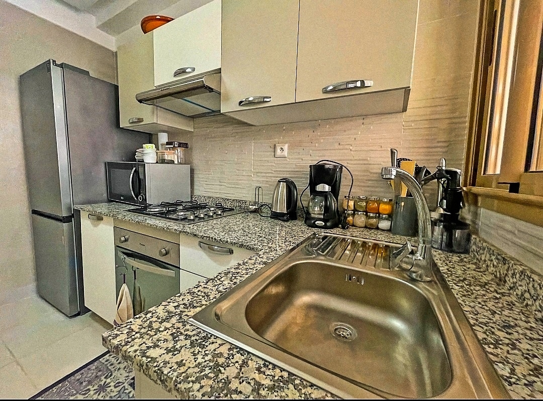 Découvrez un appartement d’exception alliant élégance contemporaine et charme marocain. Situé dans un cadre privilégié, on vous offre une expérience unique, pensée pour les voyageurs en quête de confort, de calme et de raffinement. Profitez d’un espace lumineux, décoré avec goût et d’un cadre apaisant. Chaque détail a été conçu pour vous offrir un séjour inoubliable, entre modernité et tradition. Idéal pour un séjour romantique, un voyage d’affaires ou des vacances familiale à Marrakech.