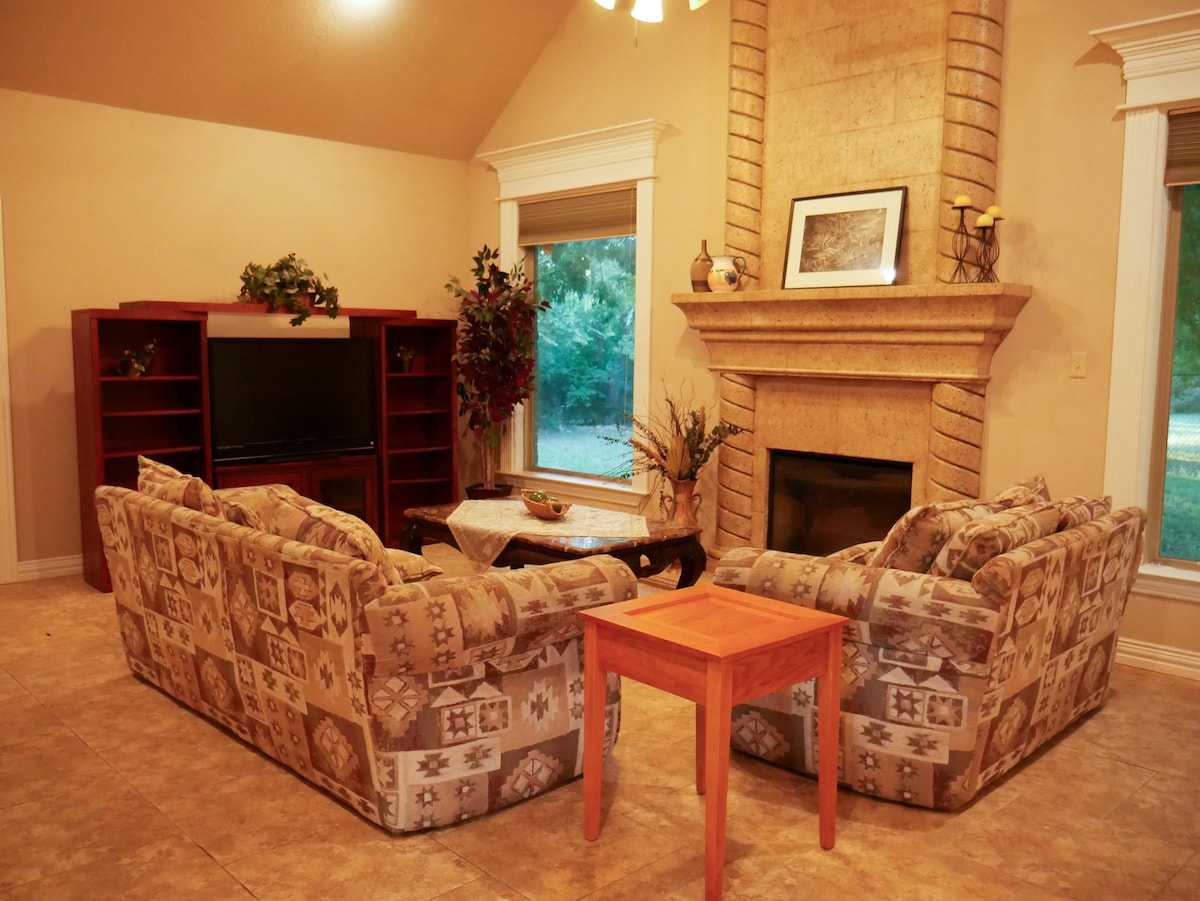 Αποδράστε σε αυτό το χαλαρωτικό, κομψό και φιλικό προς τα κατοικίδια καταφύγιο σε μια γειτονιά με γήπεδο γκολφ κοντά στη λίμνη Granbury. Απολαύστε εκπληκτικά ηλιοβασιλέματα, ζεστές νύχτες δίπλα στο τζάκι και έναν παιχνιδιάρικο χώρο σοφίτας. Βρίσκεται μόλις 2,4 χιλιόμετρα από μια δημόσια αποβάθρα και υπάρχει χώρος για να σταθμεύσετε το ρυμουλκούμενο σκάφους σας. Εξερευνήστε το ιστορικό κέντρο του Granbury, γεμάτο καταστήματα, εστιατόρια, οινοποιεία και χώρους διασκέδασης. Ιδανικό για ζευγάρια, οικογένειες ή φίλους, αυτό το μοντέρνο καταφύγιο συνδυάζει άνεση, γοητεία και ευκολία. Κάντε κράτηση σήμερα!