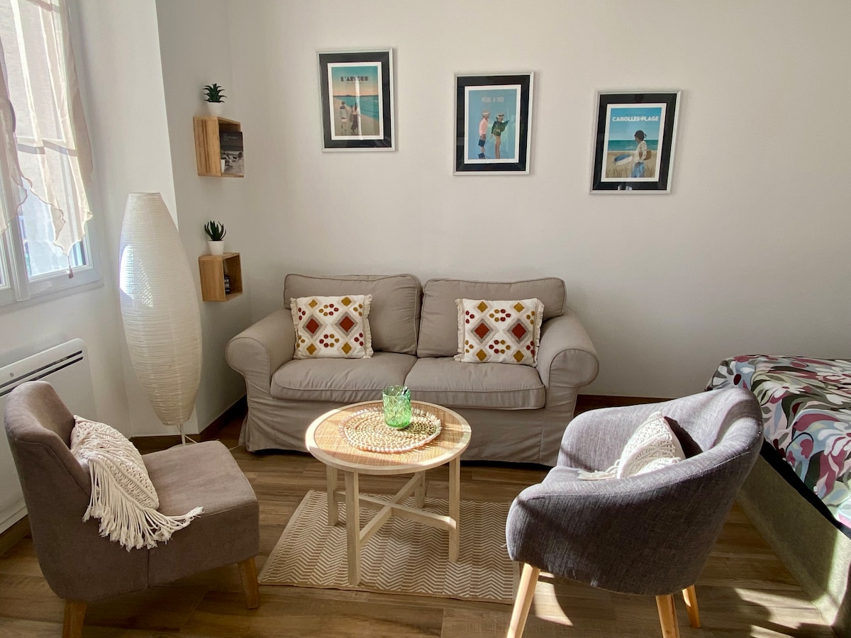 Θέλετε να χαλαρώσετε δίπλα στη θάλασσα; Το άνετο σαλέ μας σας περιμένει 200 μέτρα από την παραλία, σε έναν χώρο κατασκήνωσης 4★ με θερμαινόμενη εξωτερική πισίνα (ανοιχτή από τα μέσα Ιουνίου έως τα μέσα Σεπτεμβρίου). Καλοκαιρινή διασκέδαση, ήρεμη και οικογενειακή ατμόσφαιρα. Το σαλέ διαθέτει 2 υπνοδωμάτια (5 άτομα), εξοπλισμένη κουζίνα, 2 τηλεοράσεις, μπάνιο, ξεχωριστή τουαλέτα. Προαιρετικά πακέτα καθαρισμού και λευκών ειδών. Το ιδανικό μέρος για να επαναφορτίσετε τις μπαταρίες σας. Ανυπομονούμε να σας δούμε εκεί! Μια μικρή γωνιά ευτυχίας 200 μέτρα από την παραλία με τα πόδια.