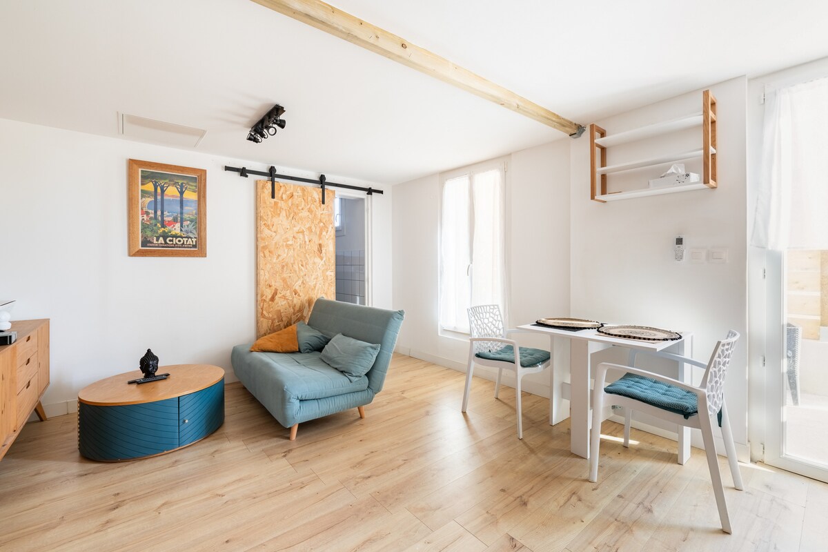 Στην καρδιά της Παλιάς Λα Σιότα, στον πρώτο όροφο ενός πλήρως ανακαινισμένου κτιρίου, θα μείνετε σε ένα άνετο διαμέρισμα που έχει επίσης ανακαινιστεί πλήρως και διακοσμηθεί σε εκλεπτυσμένο μεσογειακό στιλ. Ιδανικά τοποθετημένο σε έναν ήσυχο δρόμο, στα μισά της διαδρομής μεταξύ του Παλιού Λιμανιού και της γοητευτικής Place Sadi Carnot, όπου μπορείτε να απολαύσετε το μεσημεριανό γεύμα ή το δείπνο σε μια ταράτσα. Παρέχεται σήμα στάθμευσης, το οποίο σας παρέχει δωρεάν πρόσβαση στο πάρκινγκ Indigo Vieux Port, που βρίσκεται περίπου 10 λεπτά με τα πόδια.