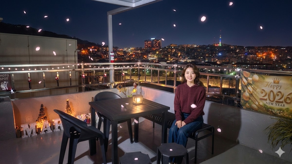 [한국전통숙소] 벚꽃 시즌, 남산의 야경명소 루프탑에서 도심속 휴식,웰컴선물(방3,침대5)