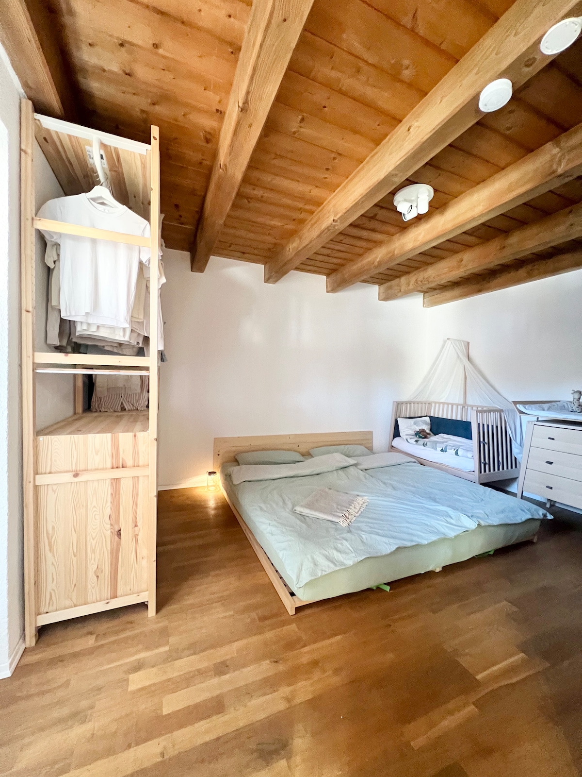 Διαμέρισμα 75 τ.μ. σε 2 επίπεδα και υπόστεγο σε μια ήσυχη κατοικημένη περιοχή αλλά κοντά στον αυτοκινητόδρομο A95, ο οποίος ακούγεται λίγο. Σοφίτα: Κλειστό υπνοδωμάτιο με κρεβάτι με βάση boxspring, συν δεύτερο άνετο κρεβάτι με μαξιλάκι για ένα ή δύο επιπλέον άτομα με κουρτίνες για προστασία της ιδιωτικότητας. Μπάνιο με φυσικό φως, πλήρως εξοπλισμένη κουζίνα με πλυντήριο πιάτων. 1ος όροφος: είσοδος, σαλόνι και μπαλκόνι. Προσβάσιμο μέσω εξωτερικής σκάλας με 16 σκαλοπάτια. Ακατάλληλο για παιδιά. Βολική πρόσβαση: 30 λεπτά από το Μόναχο ή το Γκάρμις.