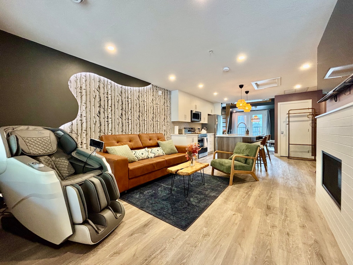Καλώς ήρθατε στο πολυτελές ορεινό σας καταφύγιο! Αυτή η ολοκαίνουργια σουίτα με ένα υπνοδωμάτιο μπορεί να φιλοξενήσει έως και 4 άτομα. Μόλις 10 λεπτά με τα πόδια από το κέντρο της πόλης, η σουίτα διαθέτει ένα υπέρδιπλο κρεβάτι, πτυσσόμενο καναπέ-κρεβάτι, ένα μπάνιο, πλήρως εξοπλισμένη μοντέρνα κουζίνα, τηλεόραση επίπεδης οθόνης, πλυντήριο/στεγνωτήριο και πολυτελή κλινοσκεπάσματα και πετσέτες. Η σουίτα περιλαμβάνει πρόσβαση σε τζακούζι, γυμναστήριο και έναν υπόγειο χώρο στάθμευσης. Άδεια βραχυπρόθεσμης ενοικίασης: RES-09776