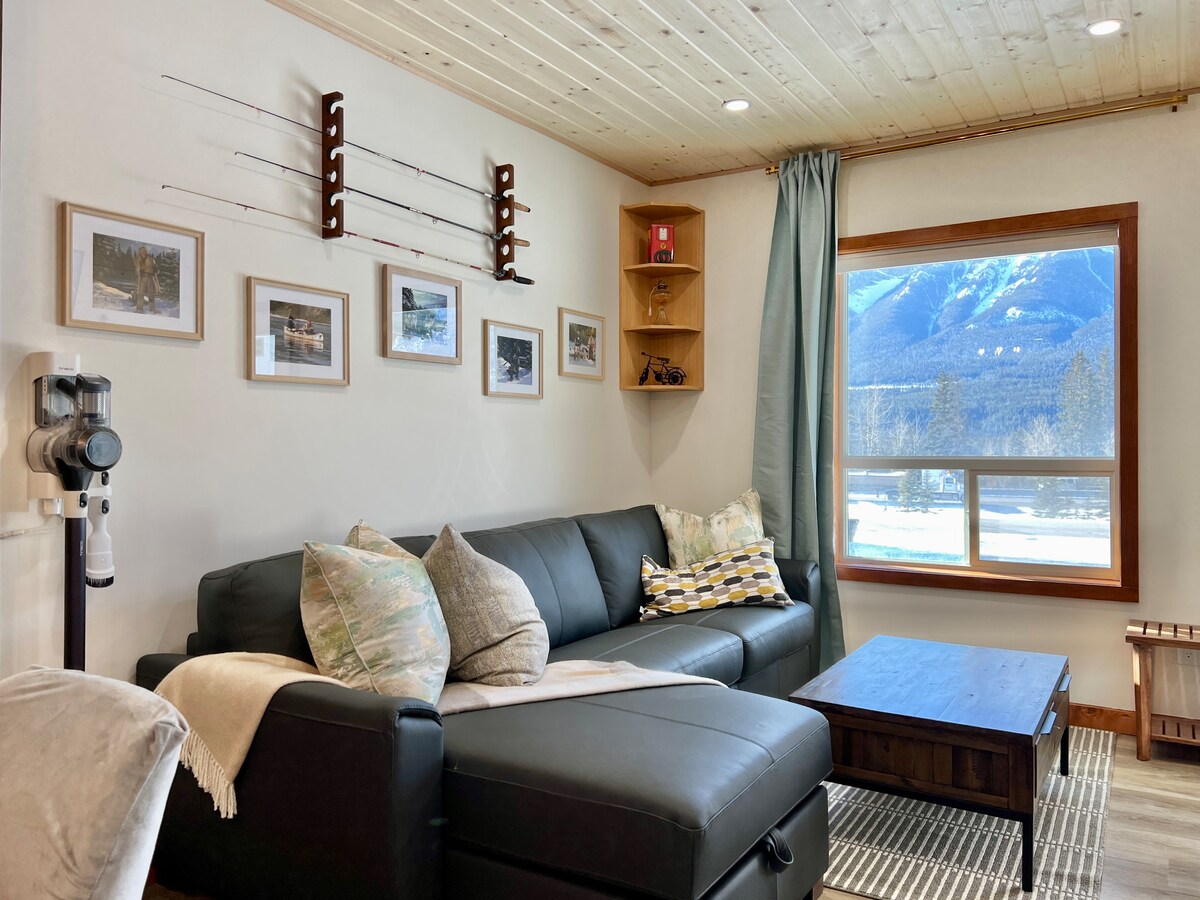 Wake up to stunning mountain views in this bright 2-bedroom, 2-story corner townhouse between Banff and Canmore, just 5 minutes from the gates of Banff National Park. Sun-filled, south-facing windows frame views of the iconic Three Sisters and Mount Rundle. The home features locally inspired touches—including wheel-thrown pottery by Coralee and reclaimed-wood furniture—and comfortably accommodates 6 guests, with space to host up to 8. Newly renovated full bathroom and refreshed kitchen.