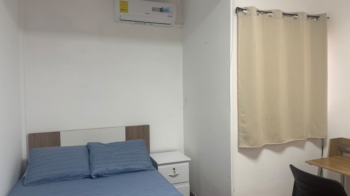 Καλώς ήρθατε στην αστική όασή σας, ένα ιδιωτικό στούντιο που βρίσκεται ανάμεσα στις αριστοκρατικές συνοικίες San Benito και Escalón. Αυτό το ήσυχο καταφύγιο για έως 3 επισκέπτες προσφέρει μια μοντέρνα και άνετη διαμονή, ιδανική για εργασία ή χαλάρωση. Η κεντρική του τοποθεσία, παρέχει ασυναγώνιστη πρόσβαση σε πολυτελή εστιατόρια, καφετέριες και εμπορικά κέντρα. Απολαύστε κλιματισμό, μικρή κουζίνα και κοινόχρηστο πλυντήριο ρούχων, όλα σε ένα γαλήνιο περιβάλλον γεμάτο δέντρα. Ένα πραγματικά γαλήνιο και βολικό σπίτι μακριά από το σπίτι.