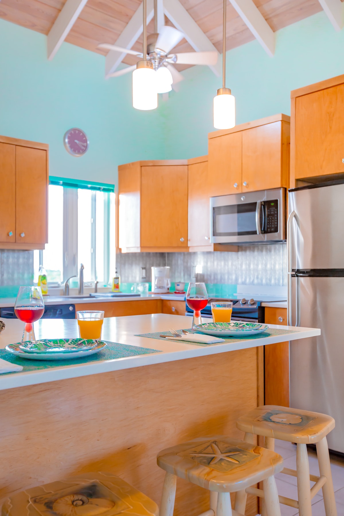 A beautiful ocean front cottage overlooking secluded cove on Old Banks Road in Governor’s Harbour between Pascal’s and Twin Cove Beach. It is perfect for anyone seeking a peaceful getaway. New kitchen and marble bath and all modern amenities - generator, AC, Starlink WIFI, 4K smart TV, AppleTV, propane gas BBQ, fully-equipped kitchen with new appliances including dishwasher, Alexa, two new decks overlooking the ocean and elegant styling. The cove is a snorkeler’s paradise.