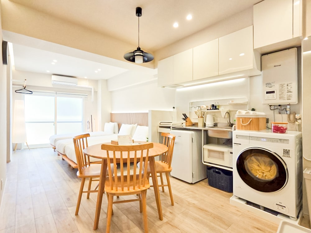 Με εκλεπτυσμένο σχεδιασμό, το δωμάτιο είναι εξοπλισμένο με κομψή διακόσμηση, άνετα κλινοσκεπάσματα (στρώματα Simmons) και λειτουργικός χώρος εργασίας. Με 307 τετραγωνικά πόδια χώρου, το δωμάτιο περιλαμβάνει ξεχωριστή τουαλέτα και μπάνιο. Προσφέρει παροχές που μοιάζουν με ξενοδοχείο και μια πλήρη γκάμα μαγειρικών σκευών για τη διευκόλυνσή σας. ☆ Πλησιέστερη στάση λεωφορείου: Μπροστά από το EX Theater Απευθείας λεωφορείο για τη Σιμπούγια, μόνο 15 λεπτά