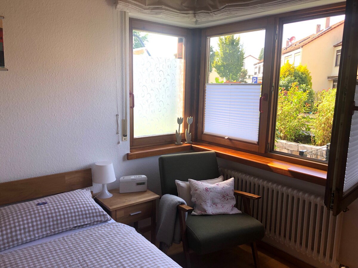 Welcome to the Black Forest! This beautiful architect´s house is located in a quiet residential area surrounded by idyllic vineyards and some of the most beautiful paths for hiking or mountain biking start directly in front of the door. The house has a big garden with a magnificent old stock of trees and a little creek. As this house was renovated looking after the design and the details and also with some technical refinements, i am looking forward to welcome you into this cozy home.