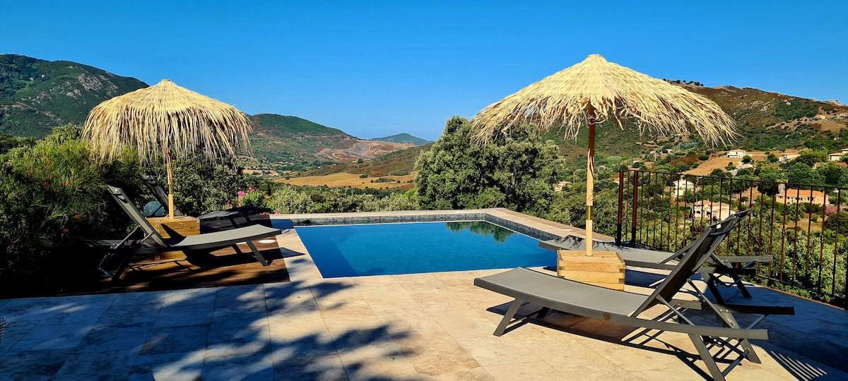 Ο συνδυασμός άνεσης και οικολογίας. Υπέροχη θέα, θάλασσα και βουνό. 2 υπνοδωμάτια, άνετο μπάνιο, εξοπλισμένη κουζίνα, 2 βεράντες. Μεγάλος κήπος. Μακριά από κάθε τουριστικό ενδιαφέρον αλλά στις πύλες του Αζαξιό: απομονωμένος οικισμός, πολύ ήσυχος 18 χιλιόμετρα από την είσοδο της πόλης. Κοντινές παραλίες, συμπεριλαμβανομένης μίας σε κοντινή απόσταση! Δώρο για διαμονή τουλάχιστον 7 διανυκτερεύσεων!