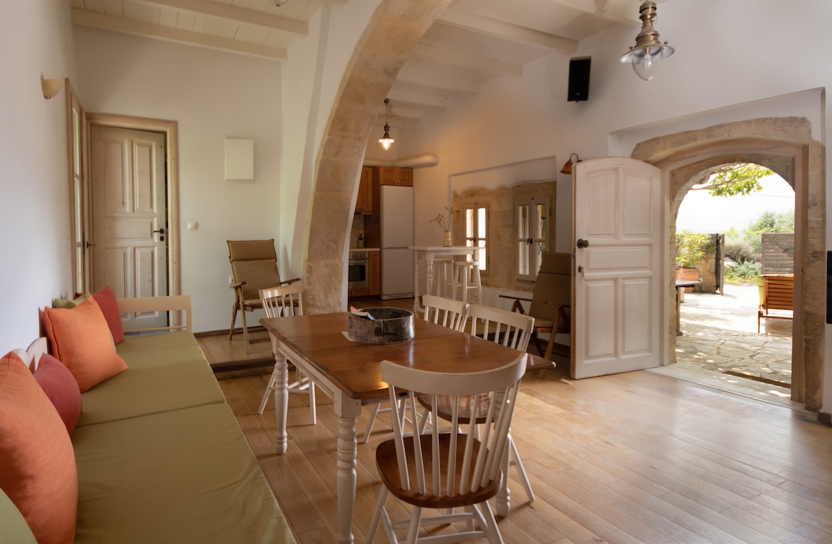 We renovated our great grandparents ‘house, built in 1860, in the traditional village of Aptera-Megala Chorafia, in distance 13km away from Chania. The house preserved its traditional colour, but it is also equipped with with all modern comforts.