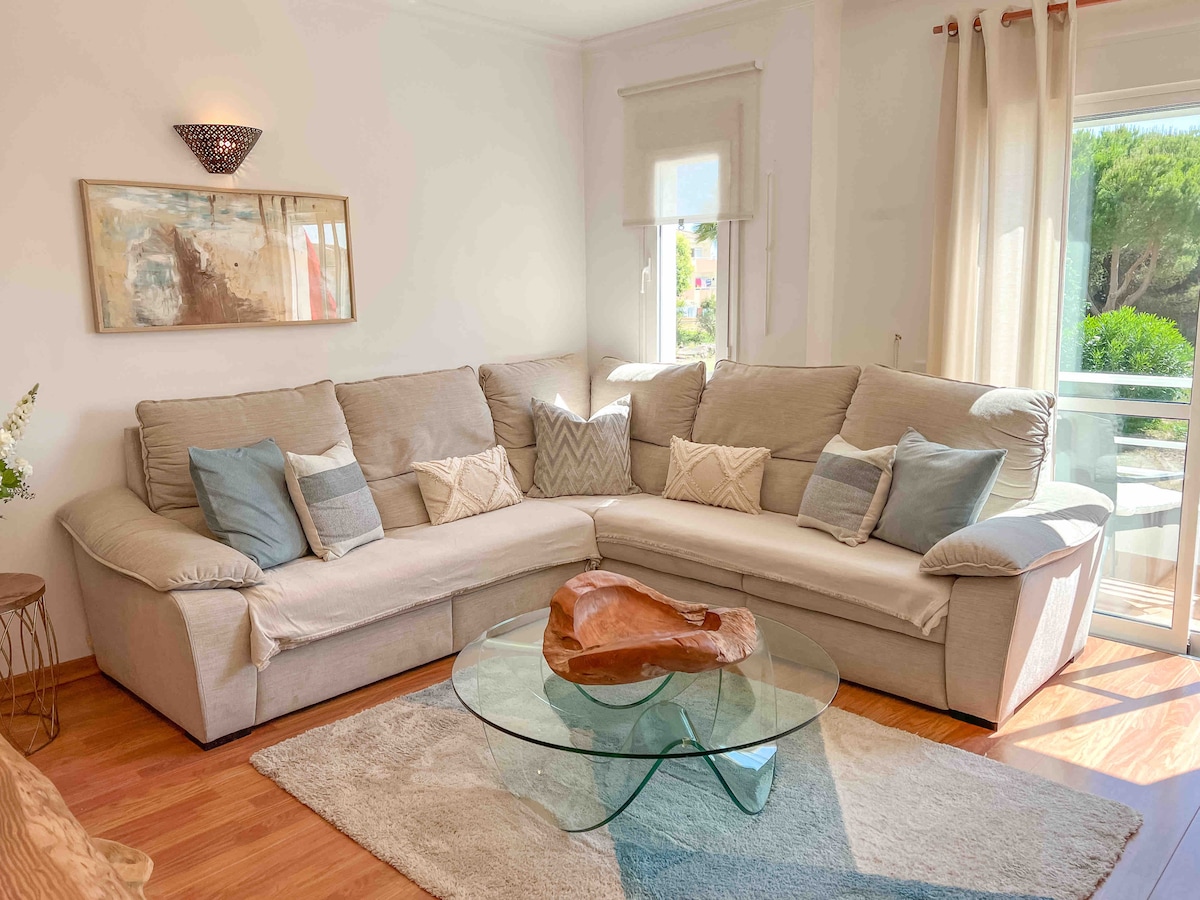 Ευρύχωρο και άνετο διαμέρισμα 140 τ.μ. που βρίσκεται στο υπέροχο παραθαλάσσιο θέρετρο Vale do Lobo, στο Αλγκάρβε 5 λεπτά από την παραλία. Μπροστά από την Ακαδημία Τένις Vale do Lobo (τένις, padel, πισίνα, γυμναστήριο), περιτριγυρισμένο από όμορφα γήπεδα γκολφ και παραλίες -2 + 1 υπνοδωμάτια (το 3ο υπνοδωμάτιο είναι τέλεια επιπλωμένο όπως τα άλλα 2, αλλά βρίσκεται στο υπόγειο) -2 μπάνια -μεγάλη βεράντα 40 τ.μ. με έπιπλα κήπου, ξαπλώστρες και μπάρμπεκιου -Έξυπνη τηλεόραση. - Wifi -Κλιματισμός και θέρμανση. -Δωρεάν υπαίθριο πάρκινγκ