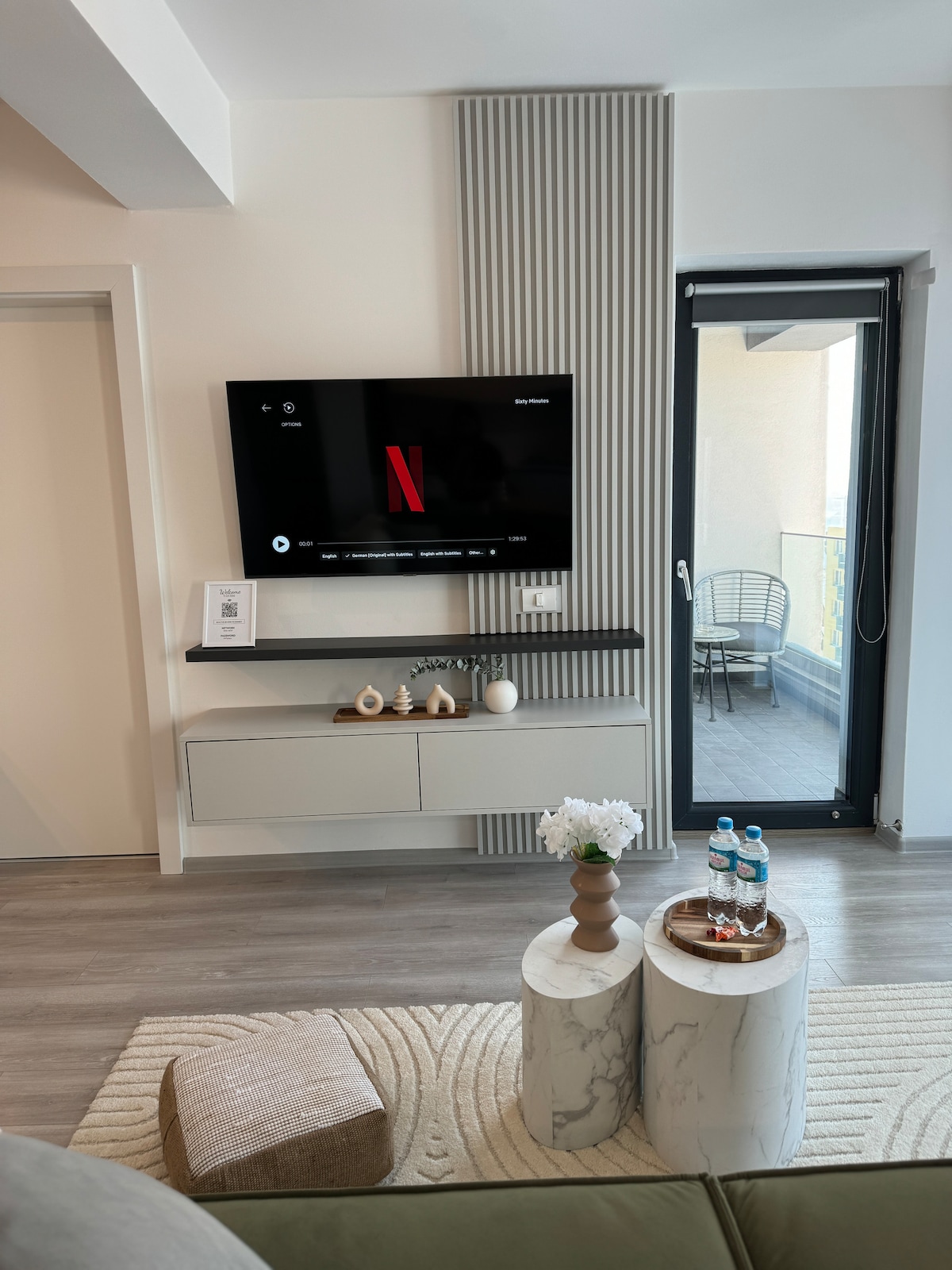 A uniquely and carefully designed, this apartment perfectly combines coziness with stunning Scandinavian accents. Situated in a new residential neighborhood, we go above and beyond to ensure a unique experience for our guests. Our home can accommodate up to 4 people and has its parking lot. The standout feature of this penthouse is the spacious terrace with a jacuzzi and a panoramic view over the mountains, being ideal for couples, business travelers, solo adventurers, or families (with kids).