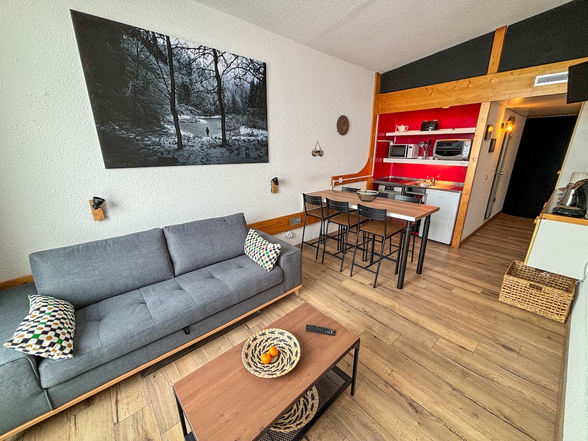 Κατάλυμα 28 τ.μ. με μπαλκόνι με νότιο προσανατολισμό Πολλά πλεονεκτήματα: - Φιλοξενεί 4 άτομα (1 καναπές-κρεβάτι, νέος Poltronesofa 12/2025 + 1 καναπές-κρεβάτι). - είσοδος/έξοδος για σκι - Εξοπλισμένο με νέο εξοπλισμό (πλυντήριο πιάτων, 2 κεραμικές εστίες, μηχανή ρακλέτ/φοντί, καφετιέρα, Nespresso...) - Μπάνιο με μπανιέρα. - βάση για σκι και μπότες Προσεκτικά ανακαινισμένο για να μοιραστείτε ευχάριστες στιγμές ολίσθησης και πεζοπορίας με την οικογένεια και τους φίλους σας Κόστος καθαρισμού70 ε Δυνατότητα ενοικίασης καρέκλα/βρεφικό κρεβάτι Κλινοσκεπάσματα Χαρτί υγείας.