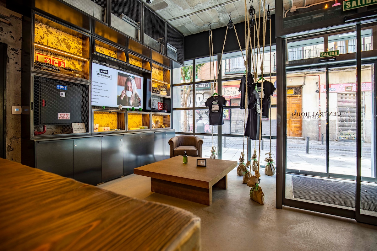 Shared room with a cozy and young atmosphere to enjoy one of the most authentic neighborhoods in Madrid. Located in the city center, 5 minutes walk from Puerta del Sol. This apartment is managed by four friends, who are travelers. As backpackers, we understand the advantage of having privacy even when sharing a room, which is why the bunk beds have a curtain and a locker to store luggage safely.