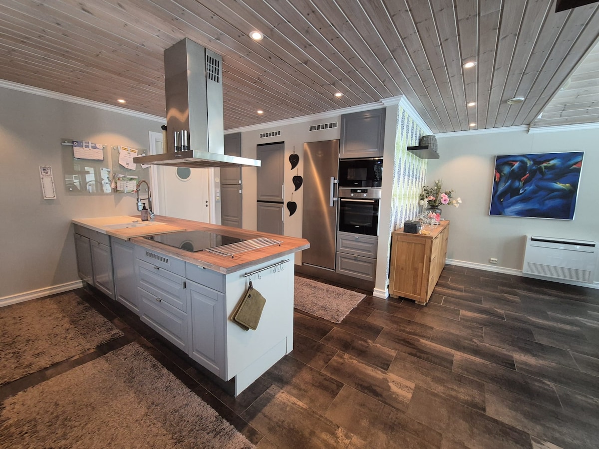 Αρχικό νότιο σπίτι από το 1850. Σημαντικά ανακαινισμένο το χειμώνα και την άνοιξη 2019. Το σπίτι βρισκόταν αρχικά σε διαφορετικό μέρος και μεταφέρθηκε στο μέρος που βρίσκεται τώρα τη δεκαετία του 1900. Το σπίτι είναι γεμάτο γοητεία που επιλέξαμε να κρατήσουμε. Μεταξύ άλλων, τα πατώματα και οι τοίχοι είναι στραβοί. Αλλά η ίδια η ξυλεία είναι ίσια. Τα παράθυρα είναι επίπεδα, αλλά τα μέρη του σαλονιού και των δωματίων όχι. Αυτό είτε σε κάνει να αγαπάς το σπίτι είτε εκνευρίζει τον εαυτό σου. Τα δάπεδα έχουν ισοπεδωθεί σε αυθεντικούς ορόφους από το 1900. Ο εξωτερικός χώρος έχει αναβαθμιστεί με ισοπέδωση.
