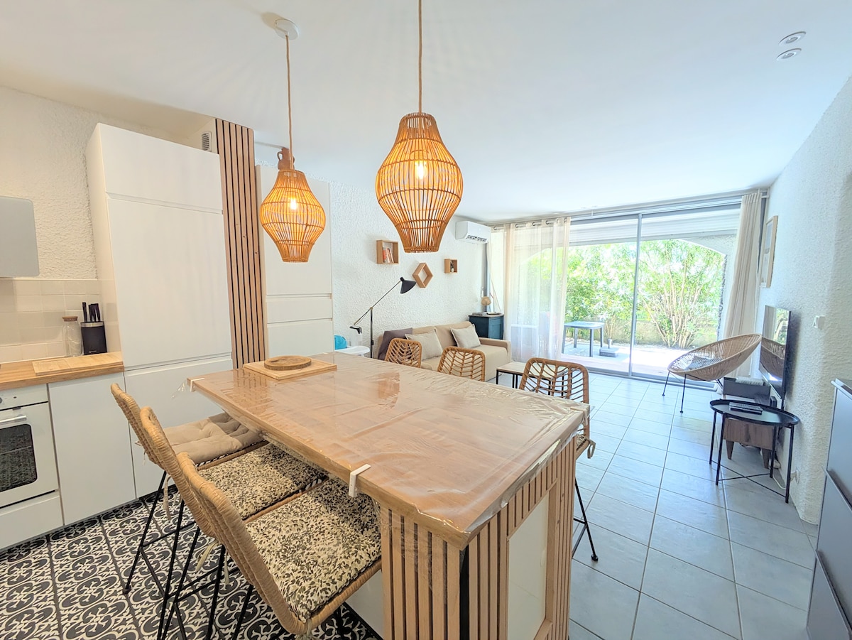 T2 lumineux avec balcon • piscine • parking gratuit • local à vélo • 🌞Bienvenue dans notre appartement cosy et lumineux, idéal pour un séjour en amoureux, en famille, entre amis, ou même pour le Télétravail (calme et wifi) ✨ Balcon privé, vue dégagée sur le jardin, les montagnes et la piscine de la résidence qui est à votre disposition gratuitement de mai à fin septembre 📍 Emplacement idéal à quelques minutes à pied des plages 🌊, ou des commerces et des restaurants