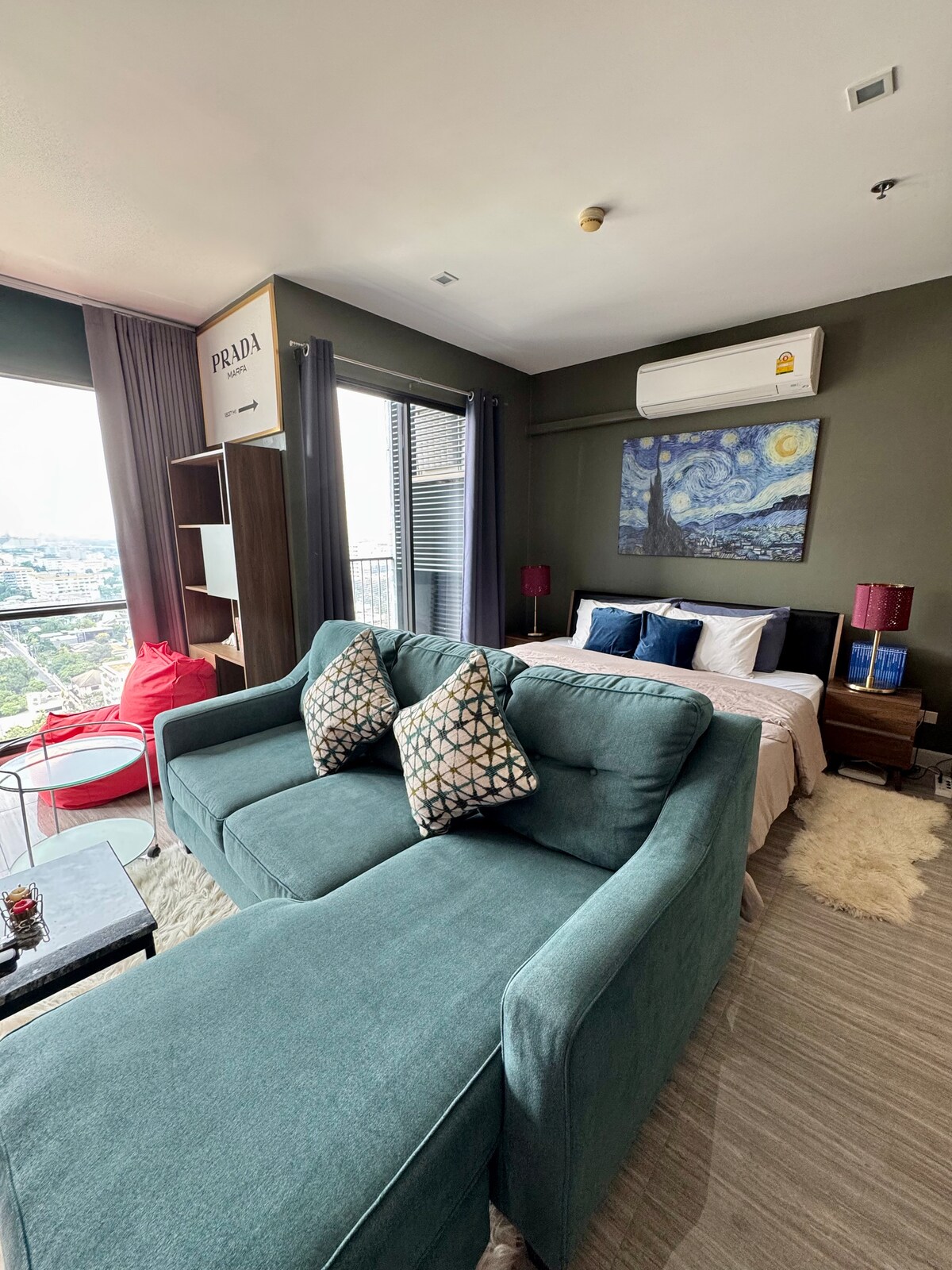 Ζήστε τη σύγχρονη άνεση στο πρόσφατα ανακαινισμένο δωμάτιό μας, μόλις ένα βήμα από το BTS Ari. Απολαύστε εκπληκτική θέα στην πόλη και το ηλιοβασίλεμα από τα μεγάλα παράθυρα, ιδανικά για να χαλαρώσετε μετά από μια μέρα εξερεύνησης της Μπανγκόκ. Ο χώρος μας διαθέτει διακόσμηση εμπνευσμένη από τα μέσα του αιώνα, ένα άνετο υπέρδιπλο κρεβάτι και μια γαλήνια ατμόσφαιρα. Σε βολική τοποθεσία κοντά σε μοντέρνα καφέ, τοπικές αγορές και μέσα μαζικής μεταφοράς, είναι ιδανικό για αστικούς εξερευνητές που αναζητούν ένα κομψό καταφύγιο στην καρδιά της πόλης.