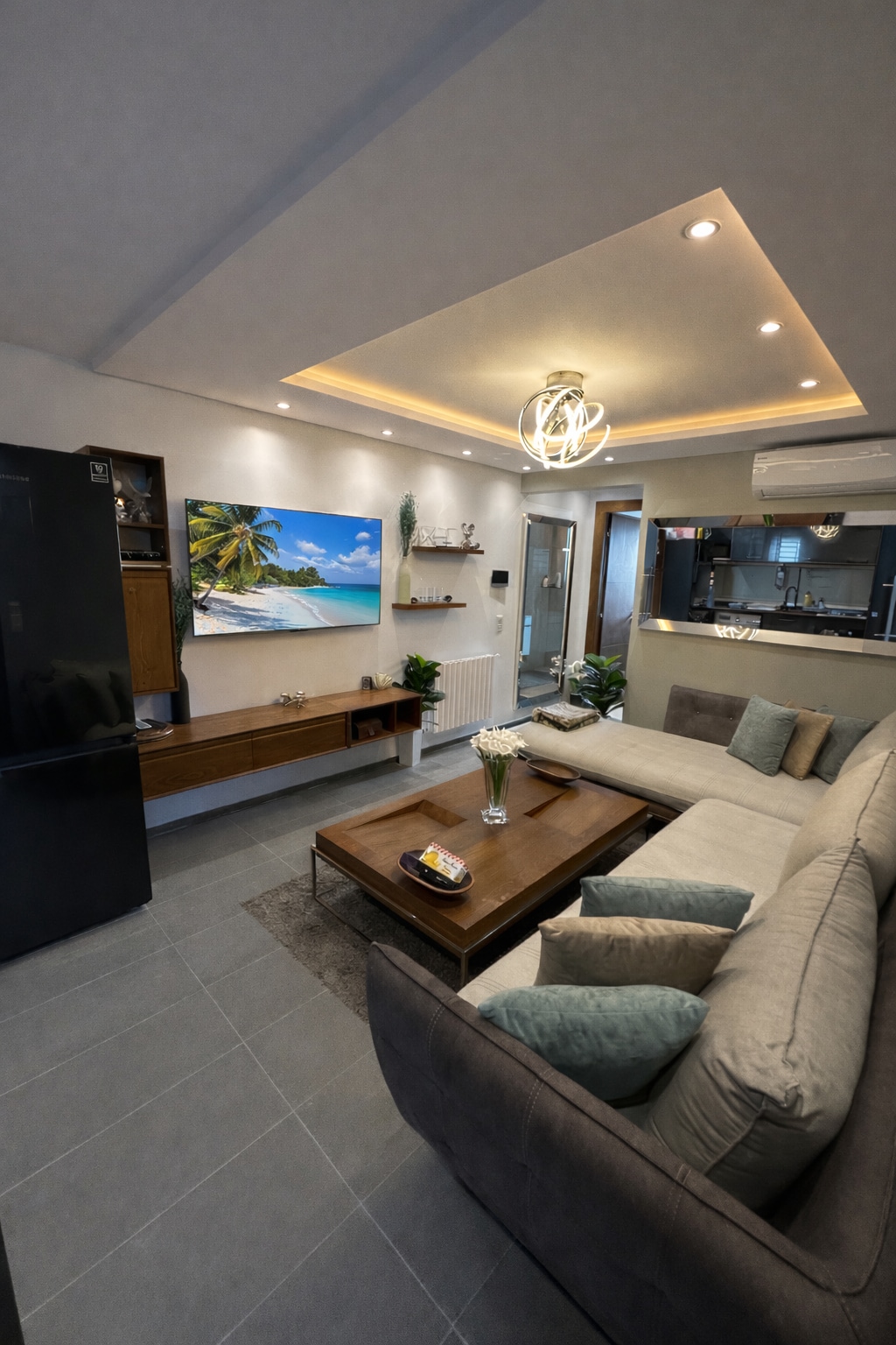 Découvrez ce bel appartement central et paisible, situé à Menzah 9, l’un des quartiers les plus chics de Tunis. Joliment décoré, il offre deux chambres confortables, une terrasse et un jardin privatif pour se détendre. Idéal pour un séjour professionnel, touristique ou médical Proche de toutes les commodités : commerces, cafés et transports. Un havre de tranquillité au cœur de la ville.