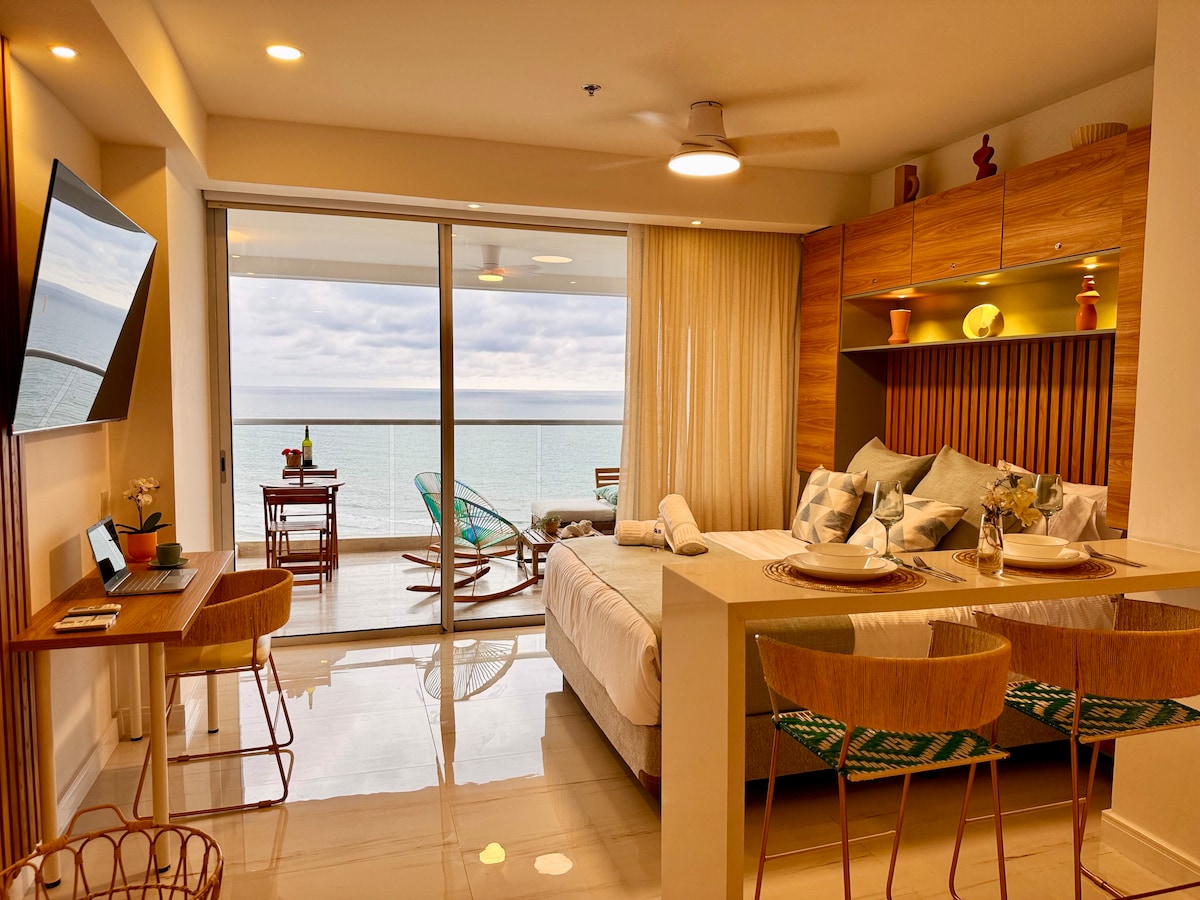 Χαλαρώστε και απολαύστε ένα εκπληκτικό ηλιοβασίλεμα, το αεράκι και την πανοραμική θέα στην Καραϊβική Θάλασσα από το πολυτελές διαμέρισμά σας στην Καρταχένα με ιδιωτική βεράντα στον 14ο όροφο, ακριβώς μπροστά στην παραλία. Θα μείνετε στο Cartagena Beach Resort & Residences, ένα σύγχρονο έργο με εκτεταμένες υγρές περιοχές και στρατηγικά τοποθετημένο ακριβώς μπροστά στην παραλία, δίπλα στο Crespo Linear Park, το αεροδρόμιο, τα καταστήματα και λιγότερο από 15 λεπτά με Uber στο Ιστορικό Κέντρο, το Getsemaní και τις πιο όμορφες παραλίες της πόλης.