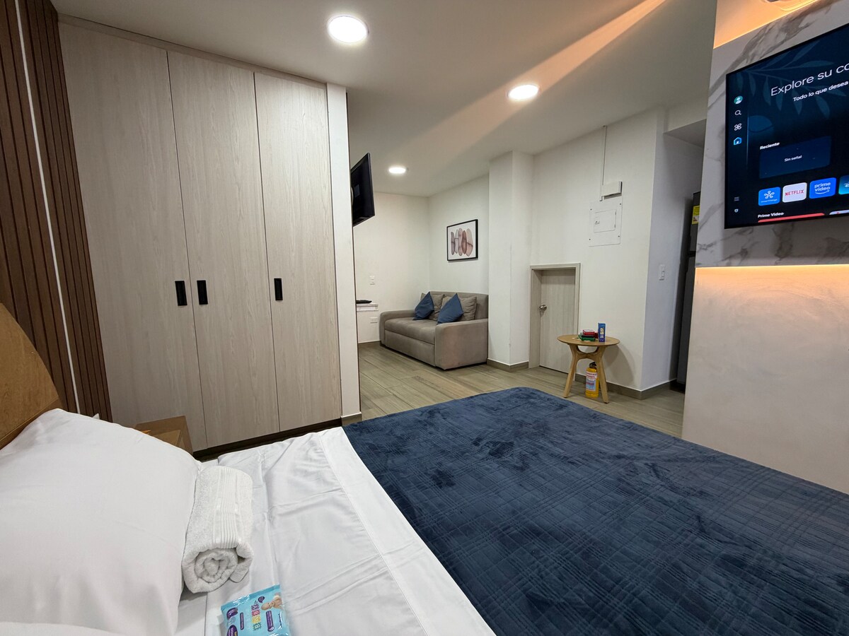 Πλήρως επιπλωμένη σουίτα 28 τ.μ., με κλιματισμό και μικρή κουζίνα. Βρίσκεται σε μια από τις καλύτερες περιοχές του Μεντεγίν, σε μια πολύ ήσυχη γειτονιά και κοντά σε όλα τα σημεία ενδιαφέροντος. Η σουίτα έχει εκπληκτική θέα στην πόλη και τα βουνά. Θα έχετε τη δυνατότητα να κάνετε χρήση του χώρου εργασίας, του γυμναστηρίου και ενός εντυπωσιακού καφέ που προσφέρει διαφορετικά είδη ποτών με βάση τον καλύτερο κολομβιανό καφέ, μπορείτε να απολαύσετε το ποτό σας στη βεράντα που βρίσκεται στον 2ο όροφο του κτιρίου.