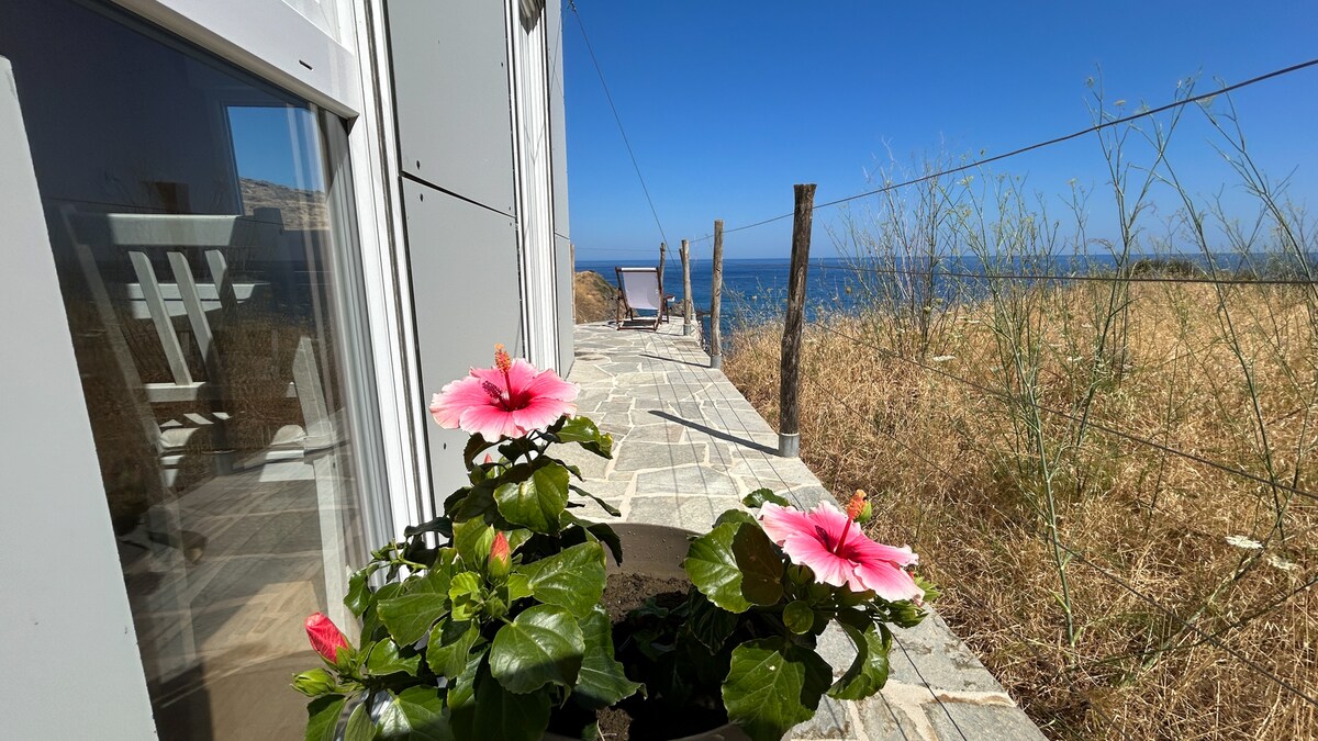 Das traditionelle Steinhaus grenzt an einer Seite an die natürliche Felswand. Das Bad ist ganz in den Fels hinein gebaut. Das ergibt ein ganz spektakuläres Wohngefühl und den Eindruck, mitten in der Natur zu sein. Die Terrasse hat eine wunderschöne Aussicht auf das Meer, den Strand von Fytema und die Berge von Messaria. Die Wohnung ist 2023 mit ökologischen Materialien im traditionellen Stil ausgebaut worden. Zum Strand sind es nur 200 m.