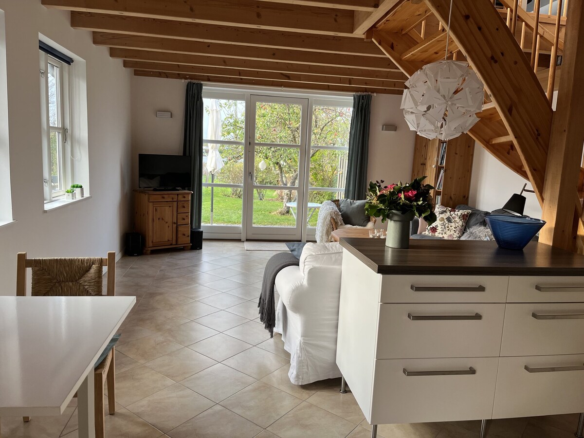 Νεόκτιστο διώροφο διαμέρισμα στον 200χρονο αχυρώνα μας, που χρησιμοποιούνταν παλαιότερα για βοοειδή, ένα κοτέτσι και ένα εργαστήριο ξυλουργικής. Ιδανικό για μικρά ζευγάρια και οικογένειες με παιδιά που αναζητούν ηρεμία σε γραφικό περιβάλλον. Η παραλία Vittens Længe βρίσκεται σε κοντινή απόσταση, ιδανική για χαλάρωση. Η διαμονή περιλαμβάνει ένα DIY πρωινό με προζύμι, βούτυρο, μαρμελάδα, γάλα,αυγά από τις κότες μας και χυλό – ιδανικό για μια αυθεντική και χαλαρωτική απόδραση κοντά στη φύση.