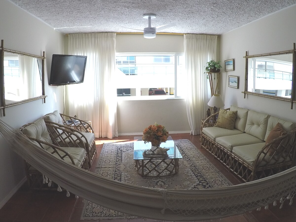 Φωτεινό και άνετο διαμέρισμα 60 τ.μ., ασύρματο ίντερνετ, μεγάλο μπαλκόνι με ιδιωτικότητα, μπαλκόνι με τζάμι και κινηματογραφική θέα στη θάλασσα. Κλειστή πολυκατοικία στην παραλία Caravelas. Δωμάτιο με κλιματισμό, τηλεόραση 32" με κάποια κανάλια καλωδιακής τηλεόρασης και μπαλκόνι. Αμερικανική κουζίνα με βασικά σκεύη, ψυγείο, ηλεκτρική κουζίνα και φούρνο. Υπνοδωμάτιο με διπλό κρεβάτι και ανεμιστήρα οροφής. Δεύτερο υπνοδωμάτιο με δύο μονά κρεβάτια και ανεμιστήρα οροφής.