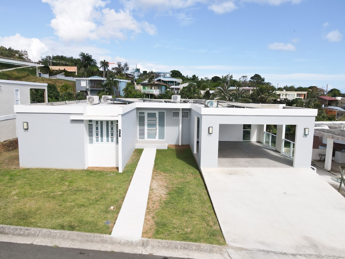 Casa Vanytel: Refugio en Patillas, λεπτά από την παραλία Απολαύστε μια μοναδική εμπειρία, ιδανική για οικογένειες που αναζητούν άνεση. Με 3 υπνοδωμάτια, 2 μπάνια, κλιματισμό σε όλο το σπίτι και ευρύχωρο πορτ-μπαγκάζ. Χαλαρώστε στην ιδιωτική βεράντα με θέα στα βουνά, την ηλιακή ενέργεια, το φιλτράρισμα νερού ώσμωσης και το Tesla Wall Connector για τη φόρτιση των αυτοκινήτων. Το σπίτι προσφέρει ένα μοντέρνο σαλόνι με τηλεόραση και εξοπλισμένη μικρή κουζίνα. Ένας ιδανικός χώρος για αξέχαστες διακοπές σε επαφή με τη φύση.