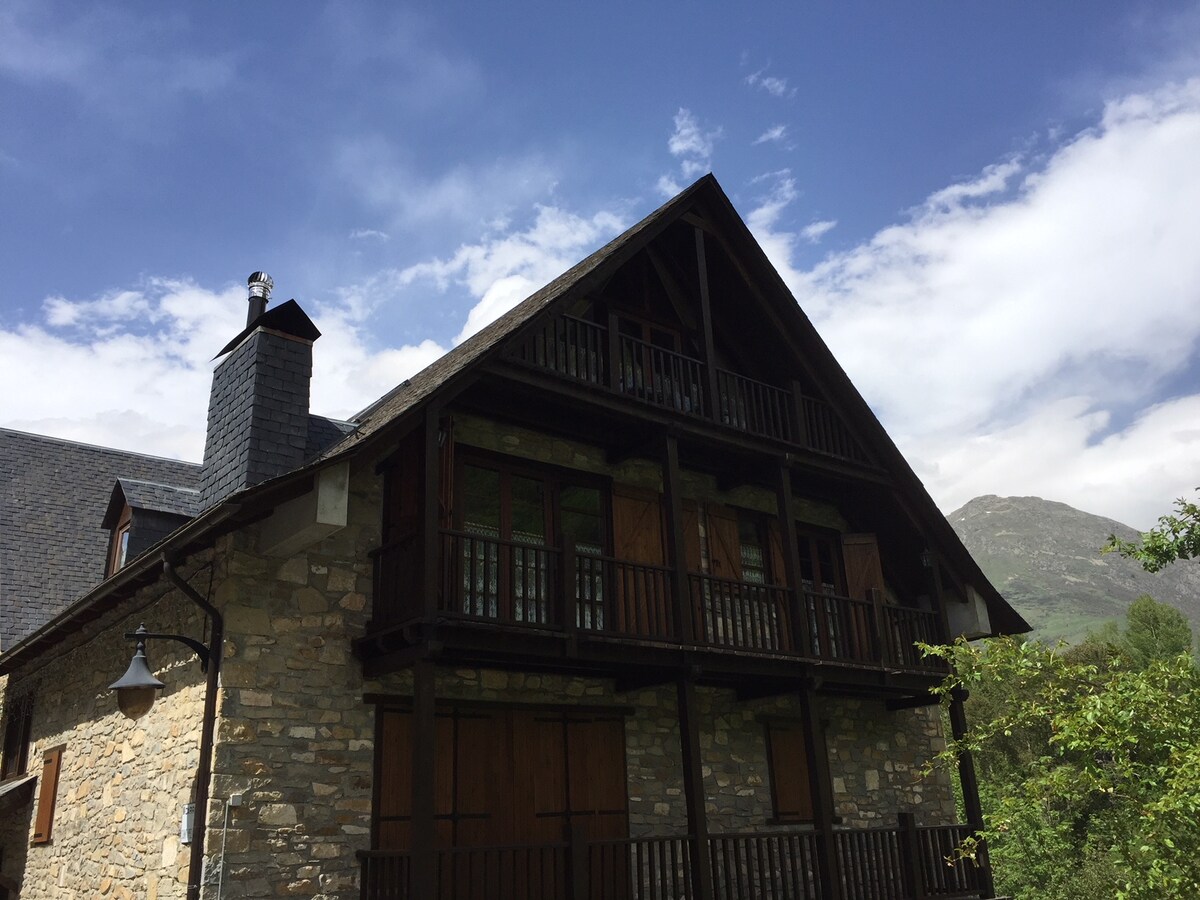 Άνετο duplex (διώροφο) σπίτι σε στυλ aranés (Αράν) με θέα στο βουνό που βρίσκεται στην κορυφή της κοιλάδας στο ηλιόλουστο και ήσυχο χωριό Bagergue, ένα από τα πιο εμβληματικά χωριά της κοιλάδας του Αράν. 10 λεπτά από τις πίστες του σκι Baqueira Beret όπου έχουμε χώρους φύλαξης για τα σκι σε απόσταση 1500 μέτρων. Κατοικία που περιβάλλεται από ένα ασυναγώνιστο τοπίο με βουνά, δάση και λίμνες Πλήρως εξοπλισμένο, εξαιρετική επιλογή για ξεκούραση και ως βάση για εκδρομές το καλοκαίρι και για σκι το χειμώνα. Θα δείτε τα αστέρια!