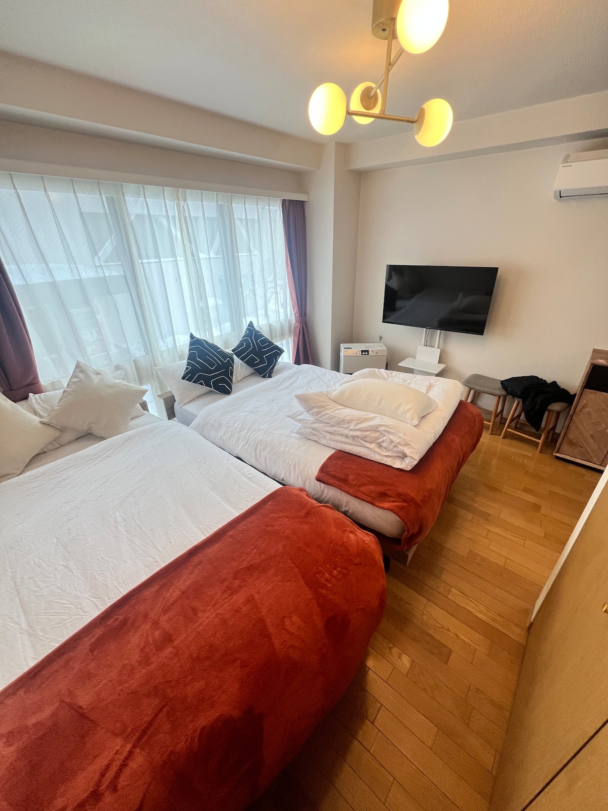 2025.11OPEN 最大6名ご宿泊可能、セミダブルベッド2台、2人用ソファーベッド完備