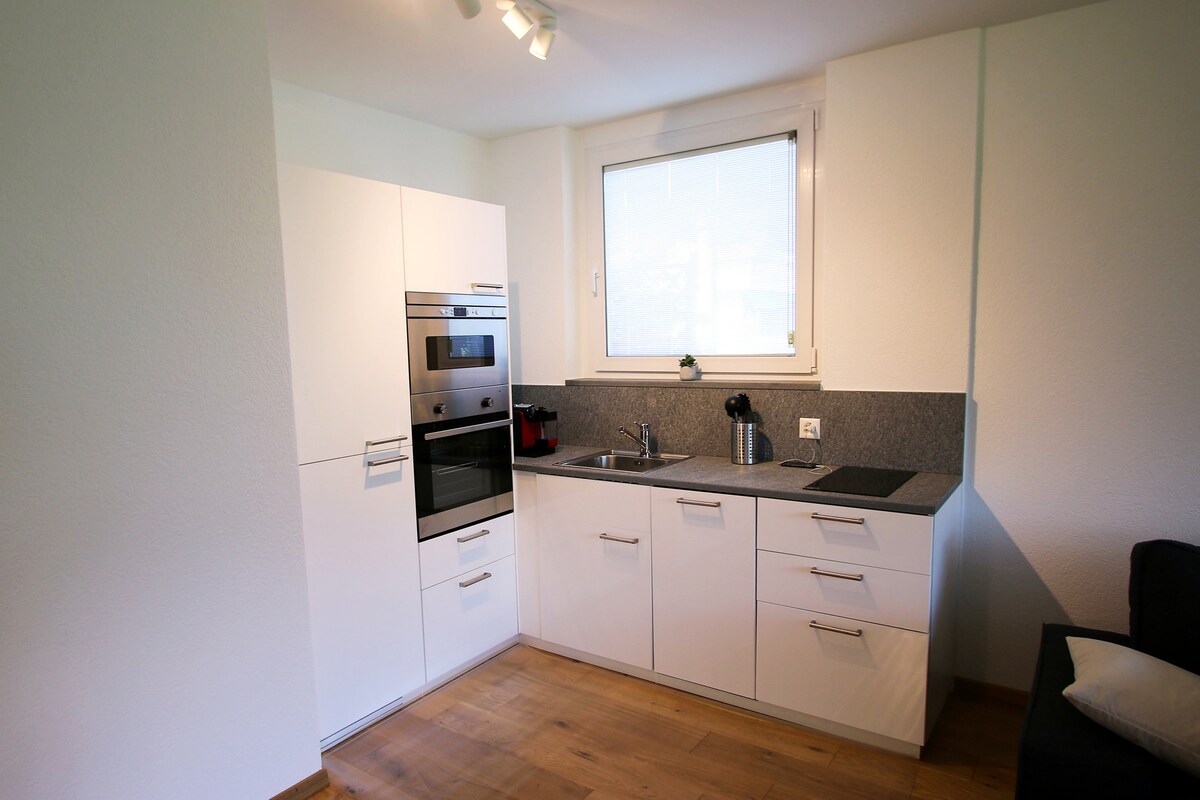 Θα νιώσετε άνετα και σαν στο σπίτι σας! Κομψό και ηλιόλουστο διαμέρισμα 2,5 δωματίων, ιδανικό για 2 άτομα. Το κομψό υπνοδωμάτιο διαθέτει ένα άνετο queensize κρεβάτι. Το bedsofa υψηλής ποιότητας στο σαλόνι παρέχει χώρο για ένα άλλο άτομο. Από το μεγάλο μπαλκόνι έχετε υπέροχη θέα στη λίμνη και τα βουνά. Το μπάνιο είναι πλήρως ανακαινισμένο με όμορφα υλικά και καμπίνα ντους. Η κοινόχρηστη εσωτερική πισίνα μπορεί να χρησιμοποιηθεί δωρεάν. Τέλεια και ήσυχη τοποθεσία για τις διακοπές σας!