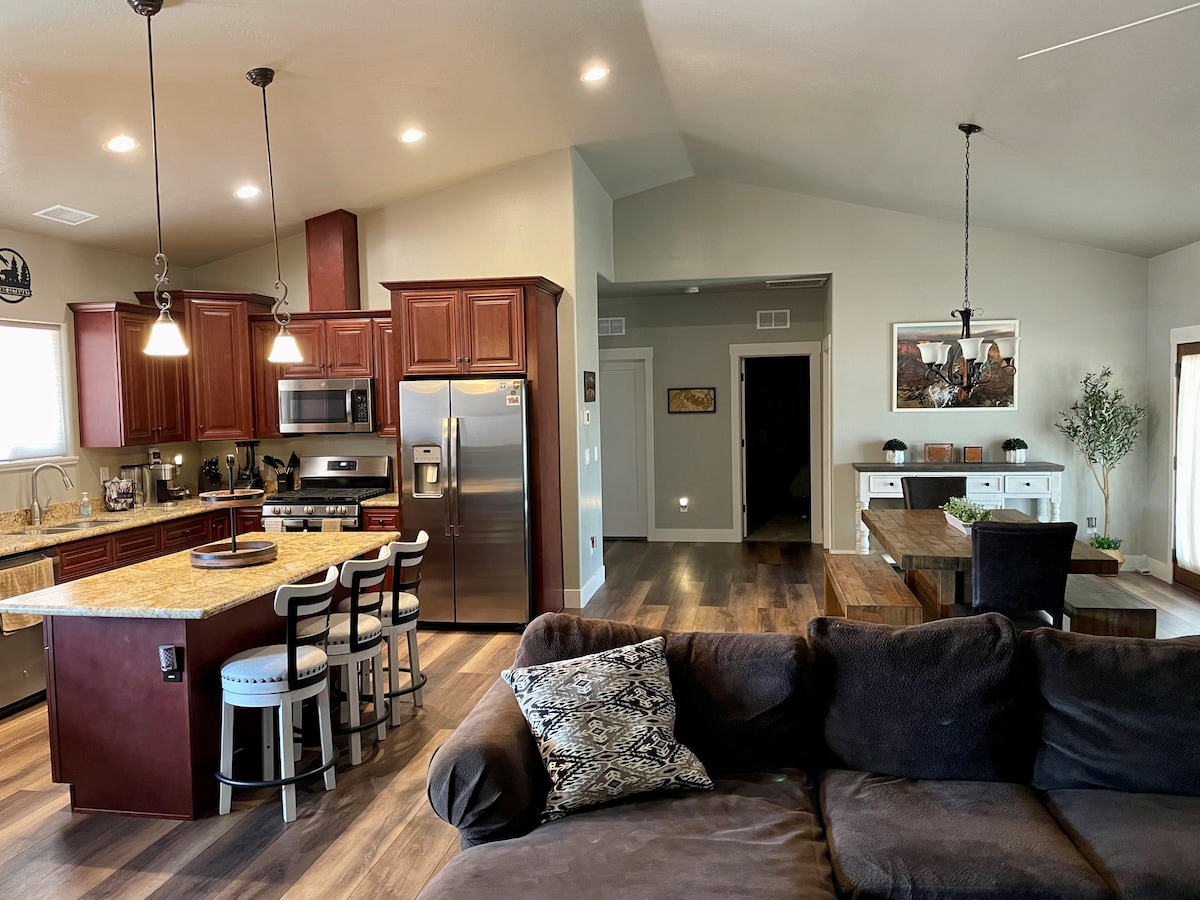 Μείνετε σε αυτό το κομψό ολοκαίνουργιο σπίτι όπου μπορείτε να οδηγήσετε το ποδήλατο εκτός δρόμου ή το ATV από το δρομάκι μας μέχρι το Εθνικό Δάσος Kaibab (περίπου 0,5 μίλια μακριά), να περπατήσετε μέχρι τη λίμνη απέναντι από το δρόμο που έχει πάρκο και παιδική χαρά ή να φέρετε τα μπαστούνια του γκολφ σας και να περάσετε τη μέρα στο γήπεδο γκολφ Elephant Rocks! Διαθέτουμε καφέ μπαρ, πλήρως εξοπλισμένη κουζίνα, μπάρμπεκιου, πλυντήριο και στεγνωτήριο μαζί με πρόσβαση στο γκαράζ. Απέχουμε λίγα λεπτά από το κέντρο του Williams, μία ώρα από το Εθνικό Πάρκο Grand Canyon South Rim και 90 λεπτά από τη Σεντόνα.