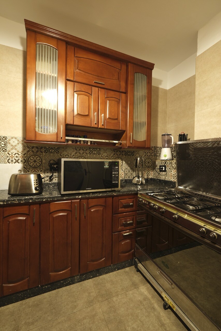 Bright Oasis near Cairo International Airport Αυτό το διαμέρισμα στον τελευταίο όροφο βρίσκεται μόλις λίγα λεπτά από το αεροδρόμιο, σε μια από τις ασφαλέστερες γειτονιές του Καΐρου, και προσφέρει ψυχική ηρεμία. Αν και δεν υπάρχει ασανσέρ στον 4ο όροφο, η ανάβαση αξίζει τον κόπο για την εκπληκτική θέα στην ταράτσα και την ήσυχη ατμόσφαιρα. Το διαμέρισμα είναι πλήρως εξοπλισμένο για την άνεσή σας, με έξυπνη τηλεόραση 4K με Netflix και Amazon Prime.