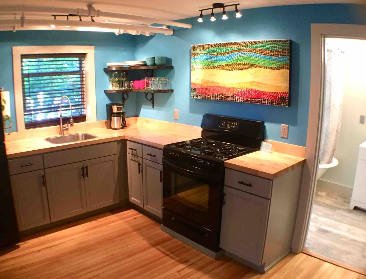 Σοφίτα σχεδιασμένη από αρχιτέκτονα και άνετο διαμέρισμα 1 υπνοδωματίου 2 μπάνιων (625 τετραγωνικά πόδια) με θέα σε δέντρα και DT AVL. ΙΔΙΩΤΙΚΟ ΥΔΡΟΜΑΣΑΖ, πλήρης κουζίνα, μεγάλη βεράντα στον κήπο RockWall, είσοδος σαλονιού, βεράντα υπνοδωματίου. Φωλιασμένο ανάμεσα σε μεγάλα δέντρα στην καρδιά του όμορφου Άσβιλ. ΠΕΡΠΑΤΗΣΤΕ μέχρι την ΚΑΡΔΙΑ του ΚΕΝΤΡΟΥ σε 7 λεπτά. ΔΩΡΕΑΝ ΙΔΙΩΤΙΚΟ ΠΑΡΚΙΝΓΚ! Εμβλητική πλατεία Pack, Νότια πλαγιά, Γαλλικό σοκολατοπωλείο μεταξύ όλων των ζυθοποιείων, εστιατόρια και καφετέριες 7 λεπτά με τα πόδια. Άνετο. Χαλαρωτικό. Ρομαντικό. Μοντέρνο ανοιχτό διαμέρισμα που συνδέεται με το σπίτι