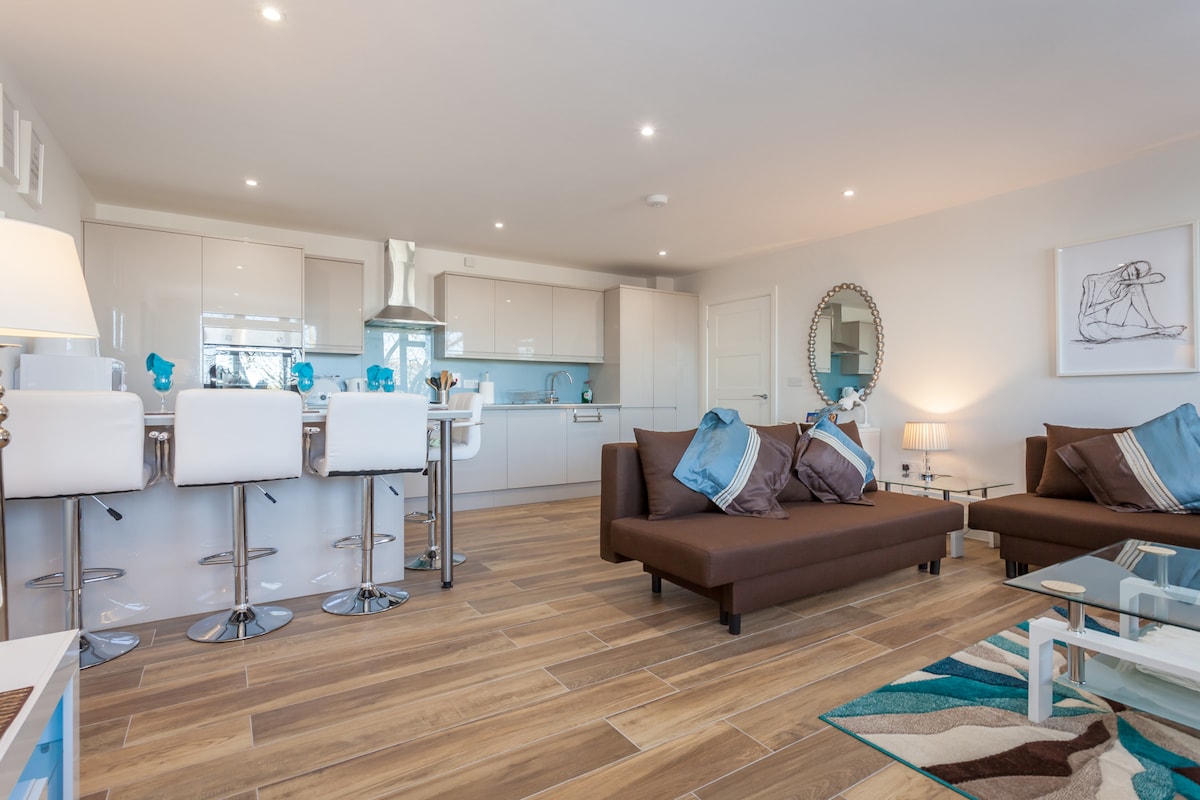 Newly renovated gorgeous studio apartment in the heart of Milton Keynes. The perfect waterside location with views over the marina. Ground floor. Fully self-contained. One bedroom apartment. Walking distance to the hospital & MK Stadium. Lovely walks along the canal, good transport links. 5 minutes drive to the city centre and snow zone. Free parking. Super fast broadband.