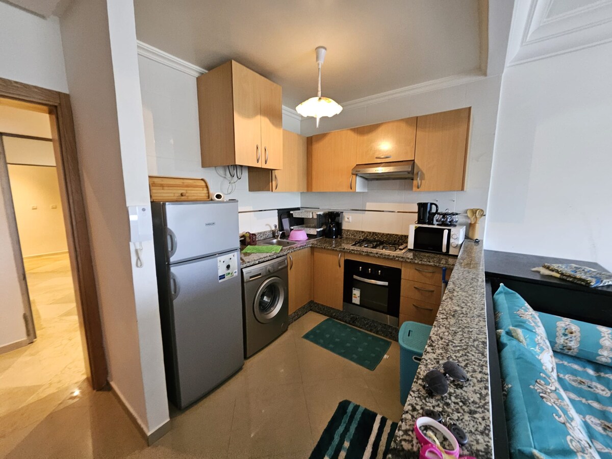 Κεντρικό, κομψό και με ιδιαίτερο στιλ, η καλύτερη περιοχή κοντά σε όλες τις παροχές. Σε ιδιωτική κατοικία με 24ωρη ασφάλεια, αποτελείται από 2 υπνοδωμάτια, μεγάλο σαλόνι με τραπεζαρία, κουζίνα, 1 μπάνιο με ντουζιέρα, ΜΕΓΆΛΗ βεράντα με εκπληκτική θέα χωρίς να βλέπει σε δρόμο, ασανσέρ, καλά επιπλωμένο και εξοπλισμένο με όλες τις ανέσεις για να κάνουμε τη διαμονή σας ευχάριστη. 2 λεπτά από τη μαρίνα της Ταγγέρης, 20 λεπτά από το αεροδρόμιο και 2 λεπτά από τον σταθμό TGV - Προαιρετική παραλαβή από το αεροδρόμιο. Δεν δέχομαι επισκέπτες. Ευχαριστώ.