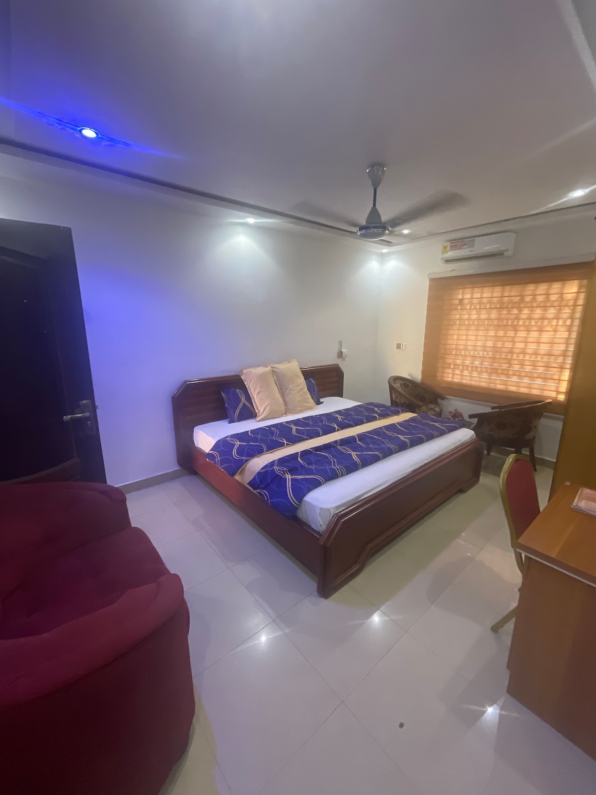 Αυτό το πολυτελές σπίτι βρίσκεται σε βολική τοποθεσία στο New Edubiase, στην οδό Takoradi-Kumasi. Απέχει περίπου 28 μίλια από το Obuasi. Βρίσκεται στα περίχωρα της πόλης σε ένα γαλήνιο περιβάλλον βλάστησης. Απέχει περίπου 40 λεπτά με το αυτοκίνητο από το Obuasi, 30 λεπτά με το αυτοκίνητο από το Assin Fosu και περίπου μία ώρα με το αυτοκίνητο από το Kumasi. Το σπίτι έχει δική του παροχή νερού, όλα τα δωμάτια έχουν κλιματισμό. Κάθε δωμάτιο έχει το δικό του μπάνιο. Το κύριο μπάνιο διαθέτει τζακούζι. Το σπίτι έχει πλήρη πλακάκια.